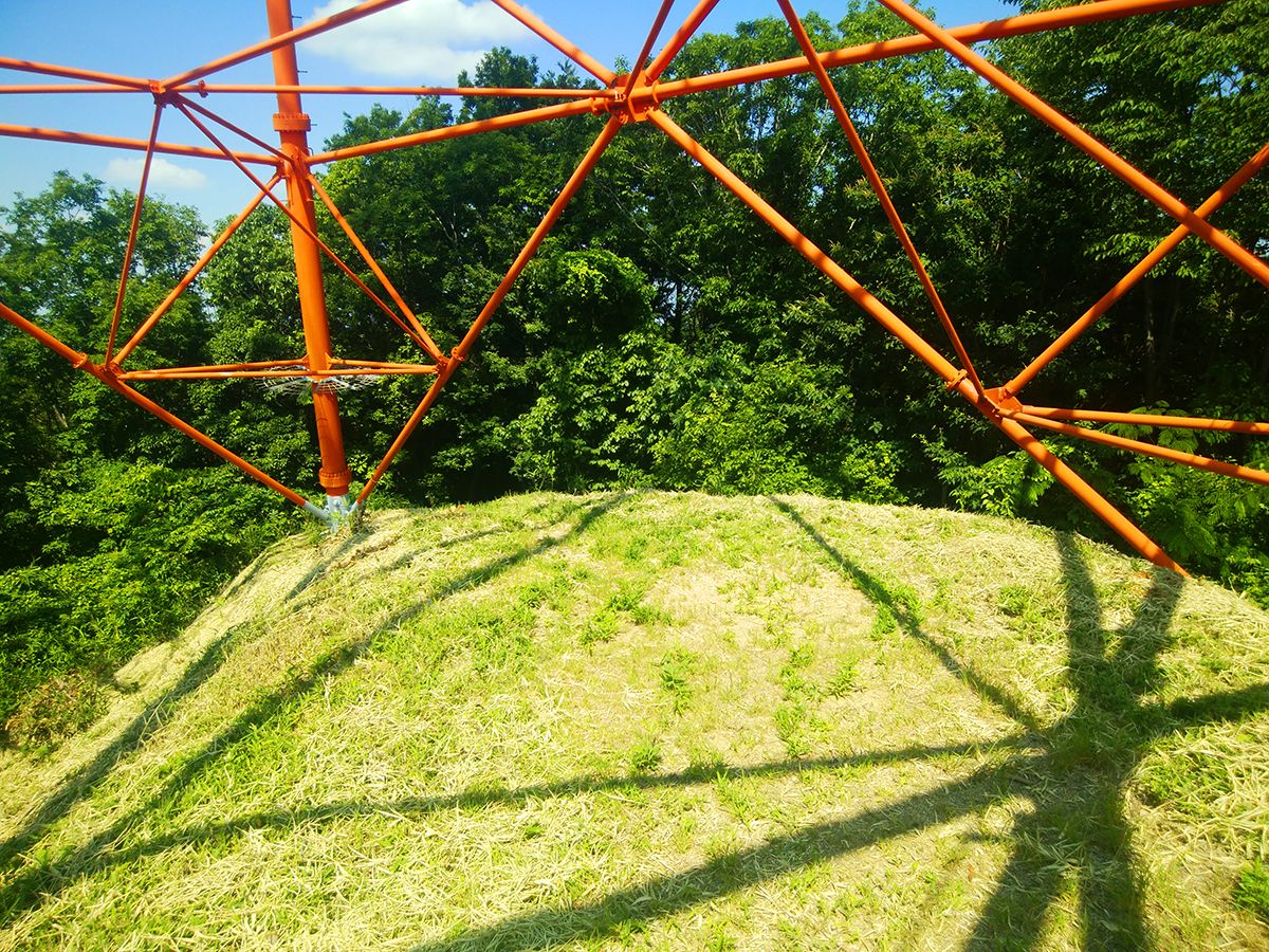 もどってくろんど園地最標高点(318.71m)に到着。鉄塔のすぐ下に三角点があった