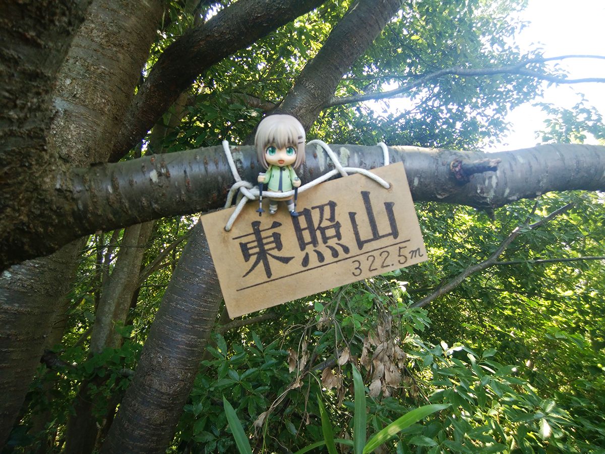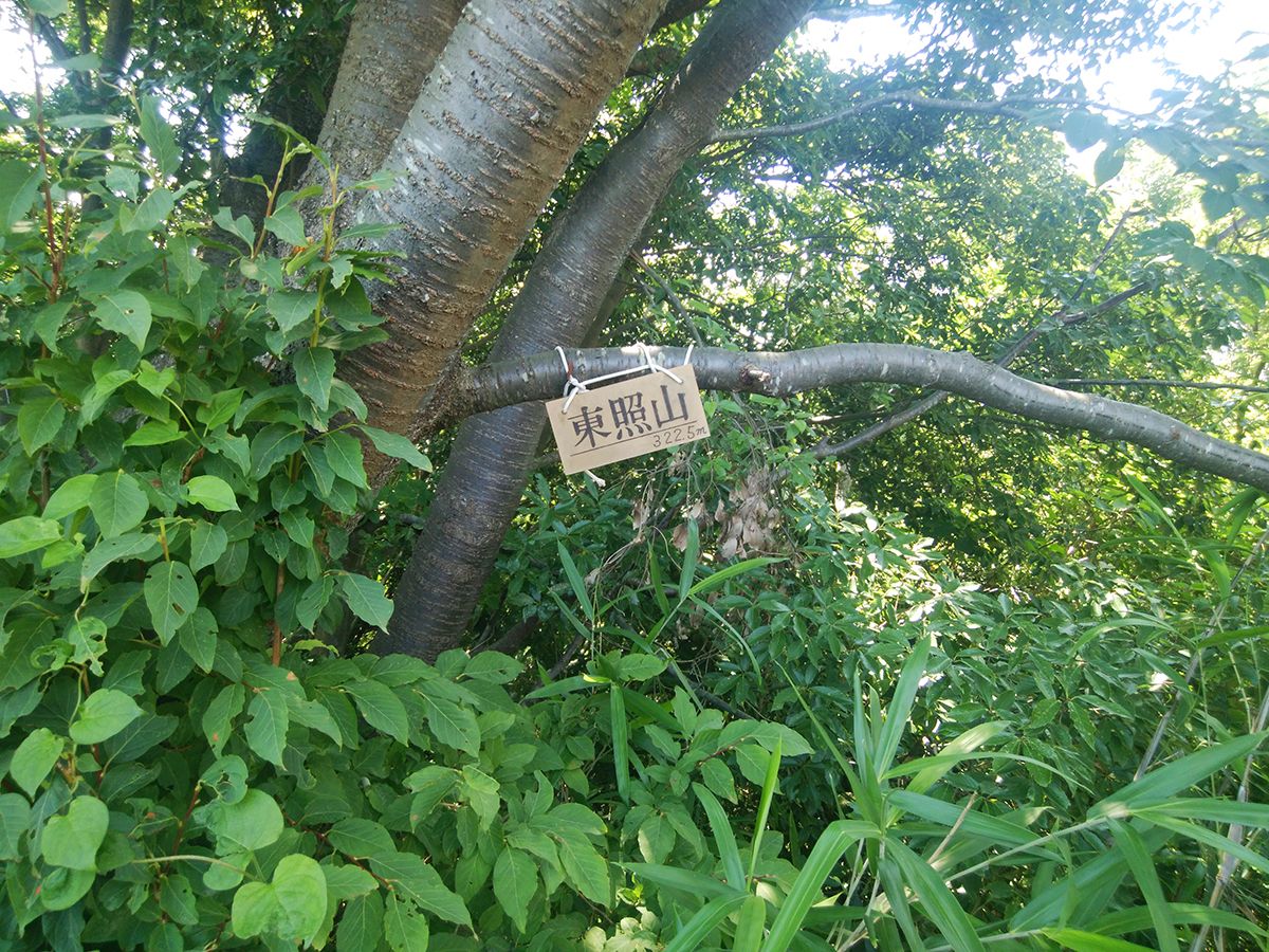 少し手前の木に東照山(322.5m)の木のプレートがあった