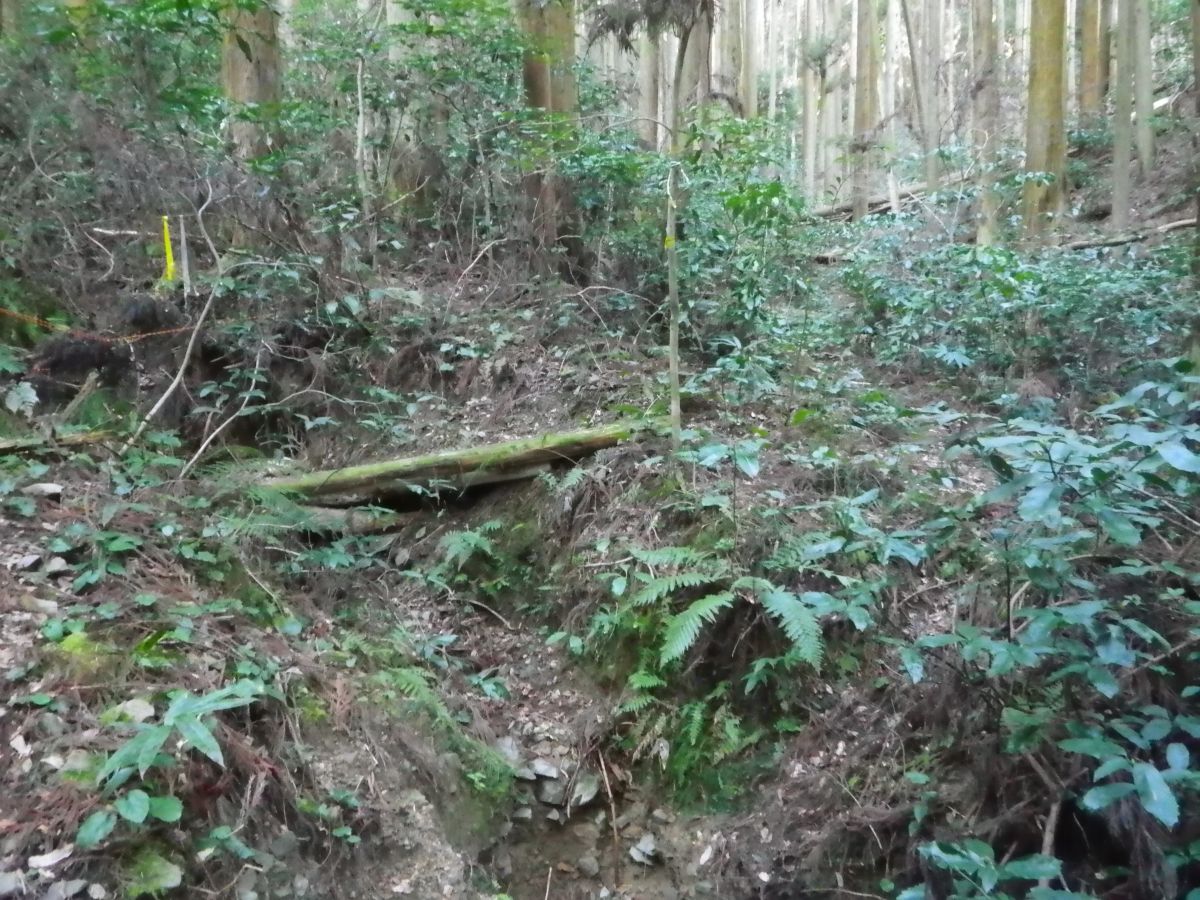 最初の分岐に到着。真っすぐ行くと信達楠畑集落を経て四石山のほうへ行けるけど、今回はまず左の尾根を登って昭和山のほうから先に登る