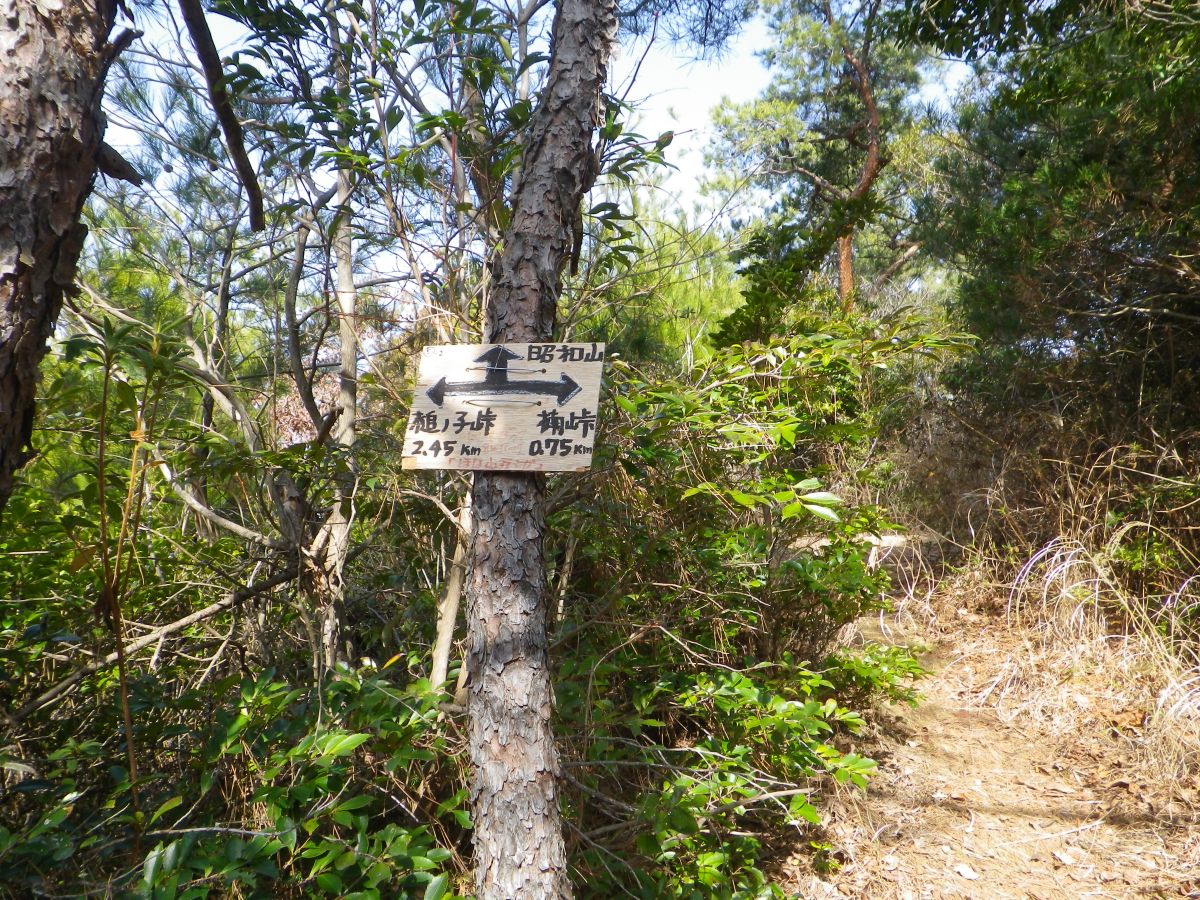 昭和山の手前で分岐の道標プレートがあったけど、実際はもう少し手前のところから槌ノ子峠への道がある。それにしても槌ノ子峠まで2.45kmって距離的に最初の分岐から半分くらいしかきてないことになる