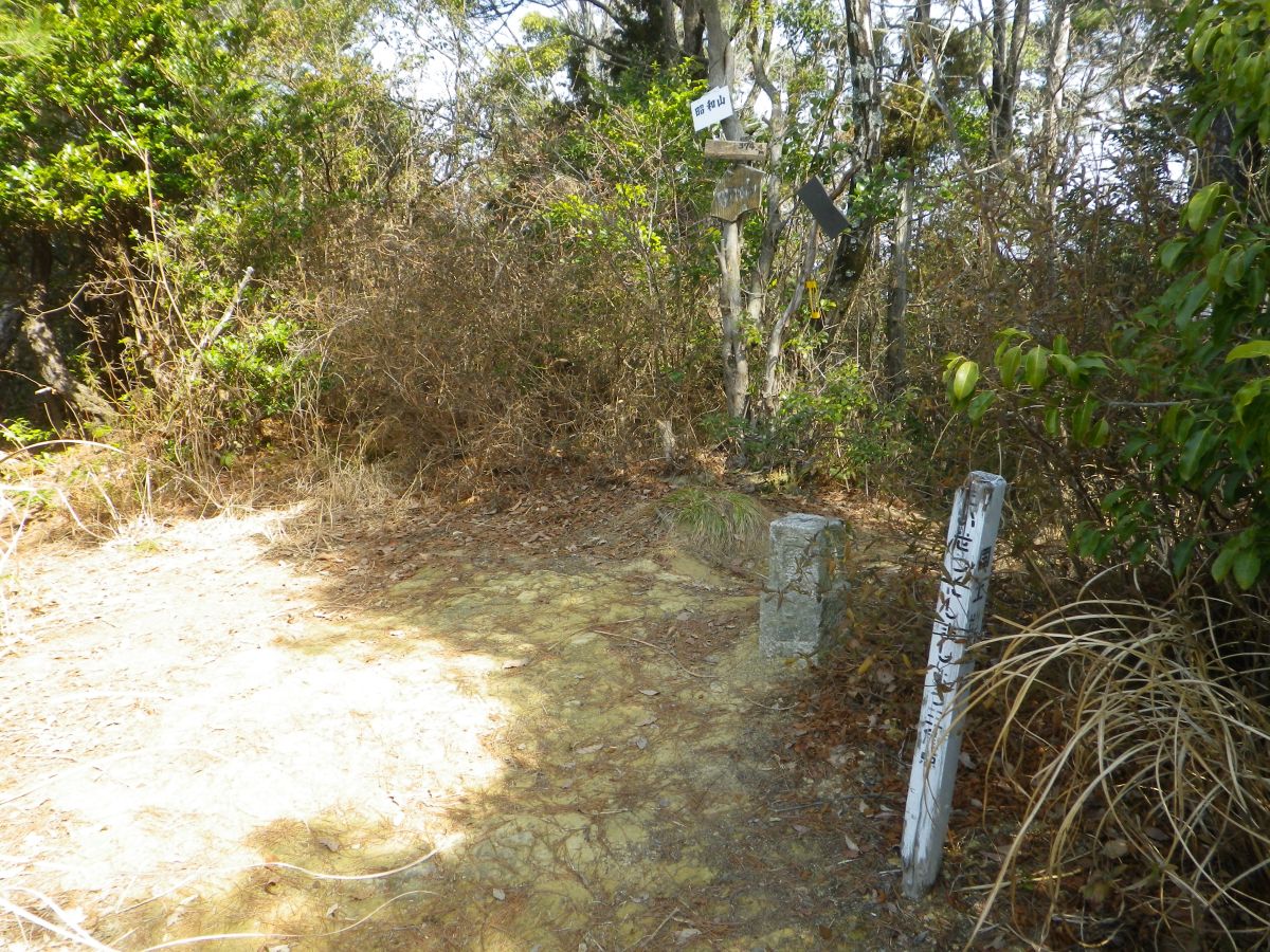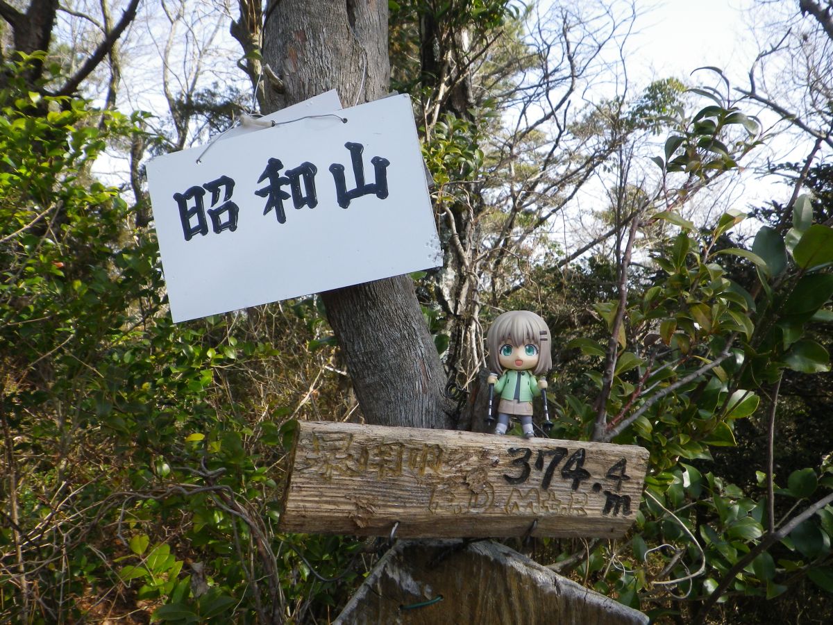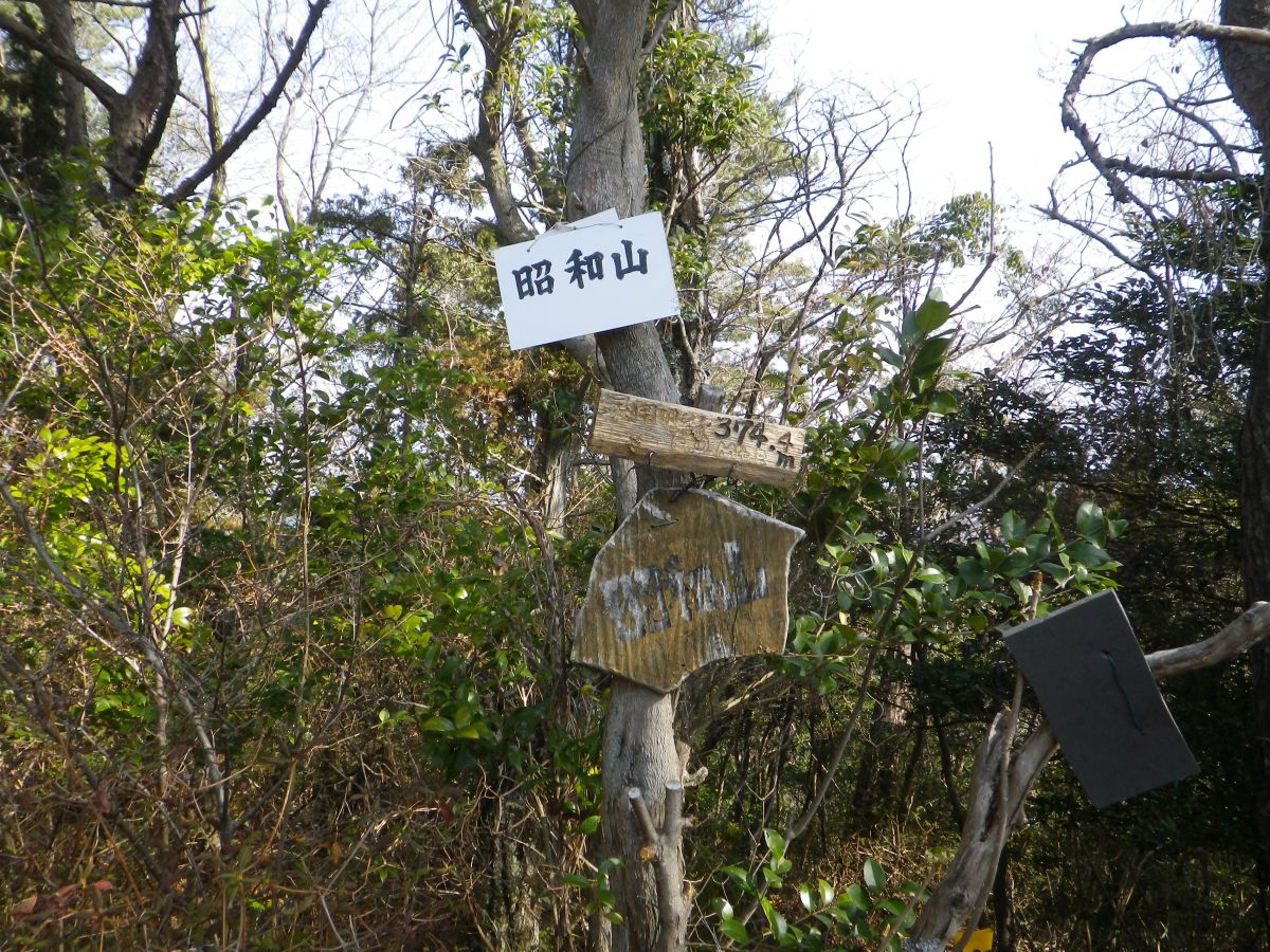 昭和山(374.56m)に到着。三角点以外は何もないただのピークって感じだった。昭和山ってくらいだから昭和の時代に山頂になったのかな!?