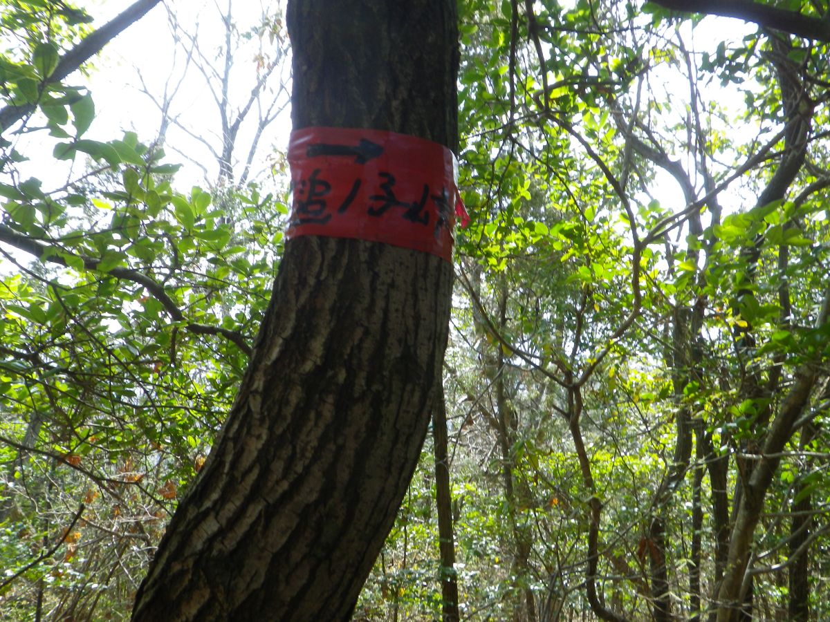 テープに槌ノ子峠への方角が書かれているのでこれを目印に進んでいくといいが、これを見つけるのに少し時間がかかってしまった