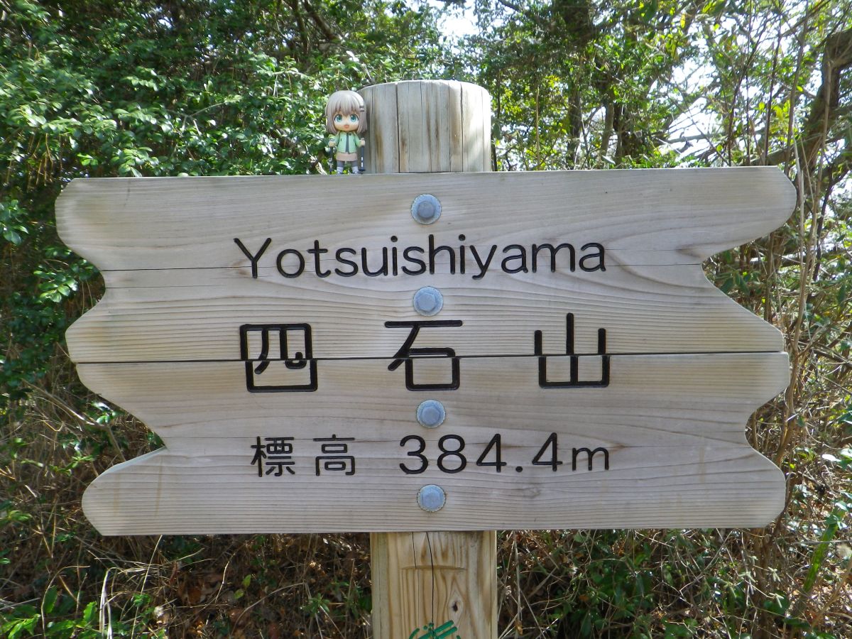 せっかくなので四石山の山頂看板と雪村あおいちゃんを撮影しておいた。今では雪村あおいちゃんのほうが体力あると思う