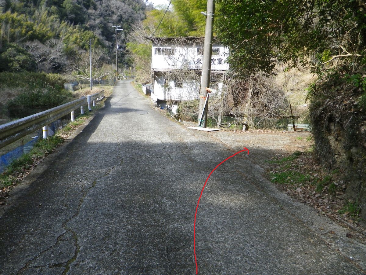 沢沿いの道を進んでいくと信達楠畑の集落に出た。ここから集落になるので少しの間は道路歩きになる