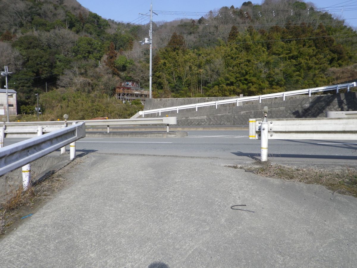 ここで右に曲がってガードレール越しに左側へおりていく