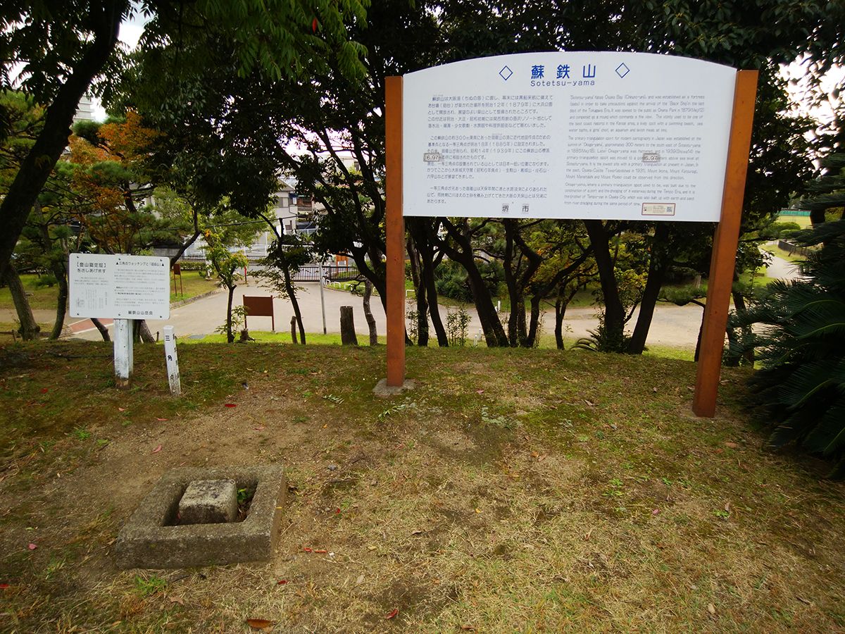 大阪50の山の一つである蘇鉄山ですが、日本で一等三角点がある山で最も低いとされているようです。大浜公園の中にあるのですが、駐車場から登り口までの道がわかりにくいかもしれません。これはもう山というより丘といったほうがいいでしょう。