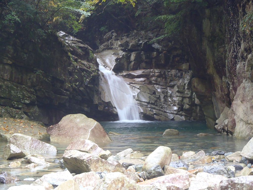 紅葉はじめの一の滝。完全紅葉だと綺麗だろう