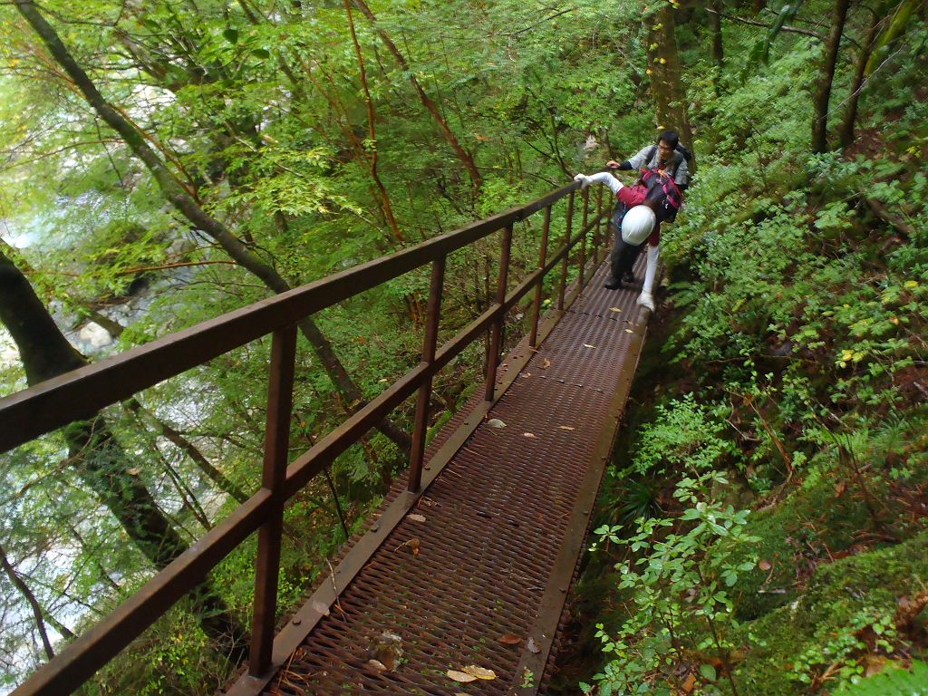 沢を渡る