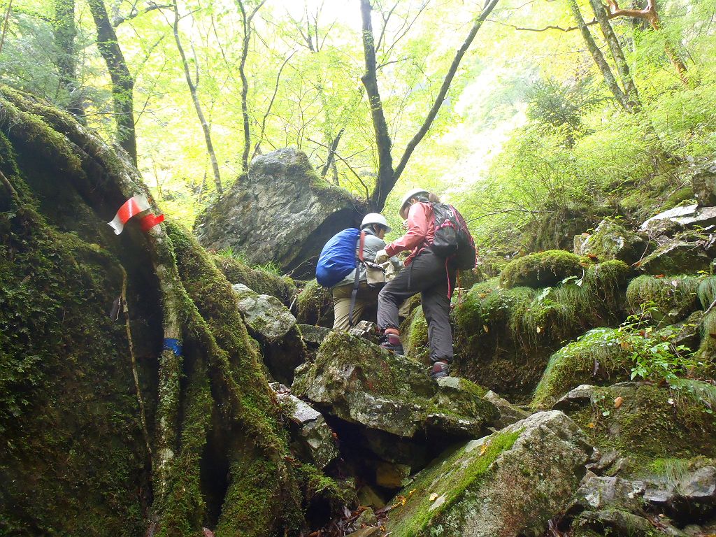 登って沢を巻く