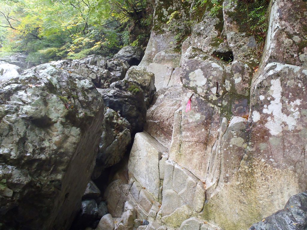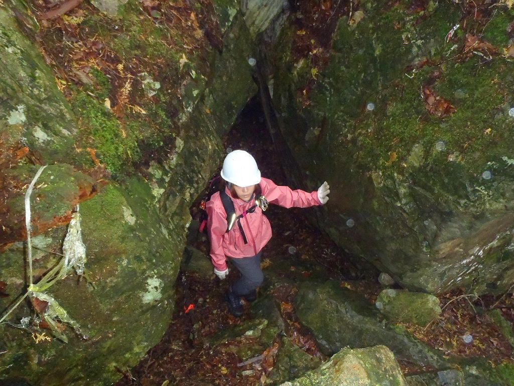 岩の間をくぐる