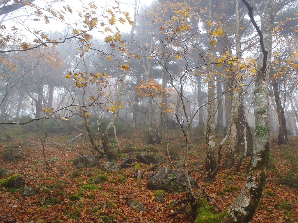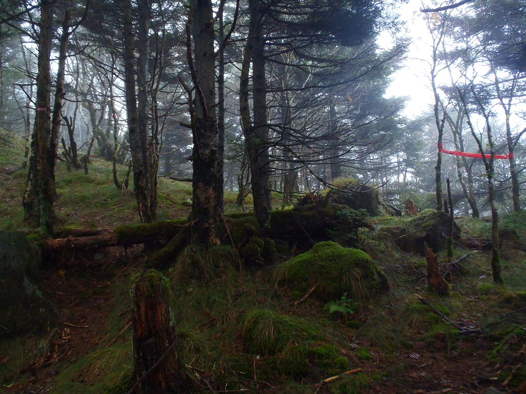 弥山手前は大倒木地帯といわれ、だだっ広く樹林が倒れている。弥山はすぐそこなのに迷いやすい。冬吹雪かれたら確実に迷うだろう