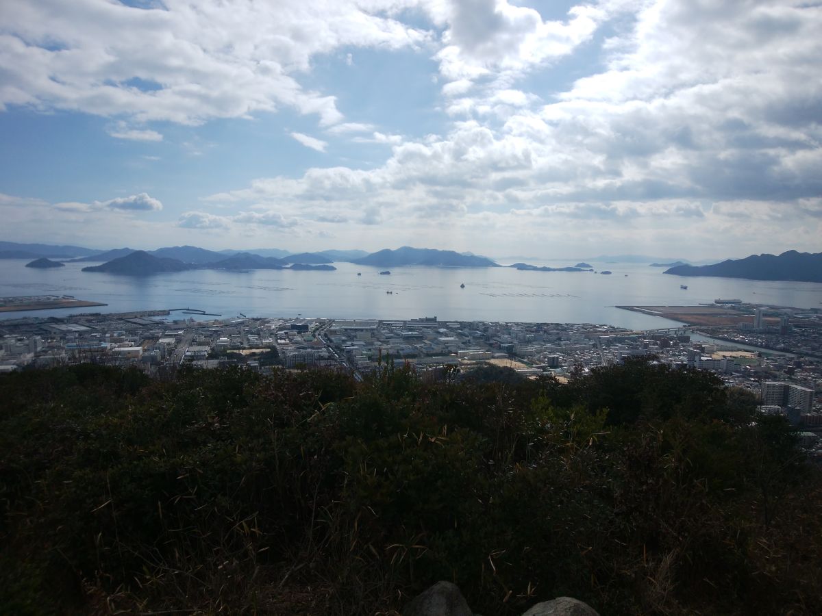 広島遠征してナイトハイキングの下見のつもりで昼間に登っておいた鈴ヶ峰ですが、山頂に登ってみると展望は樹林に遮られている部分が多くて夜景撮影するほどでもないと判断しました。全く展望がないというわけではなかったのですが、一番いい中央の海岸が背伸びしないと見れないというのが非常に残念でした。とはいえ、この山は地元の人に人気なのか登っている間も数人の登山者とすれ違い、山頂にもたくさんの人がいました。ナイトハイキングの遠征は昼間が暇だということもあるので登っておいてよかったと思っています。さらに奥の鬼ヶ城山にも行こうか考えましたが、時間的な余裕がなかったので今回は鈴ヶ峰をピストンするだけで終わりになりました。まだ樹林が遮られていない鈴ヶ峰山頂からのパノラマ画像を見ていたので残念な結果に終わりましたが、散歩がてらの登山という点ではちょっとした運動になってよかったです。