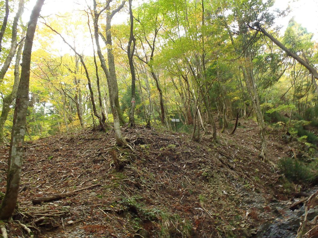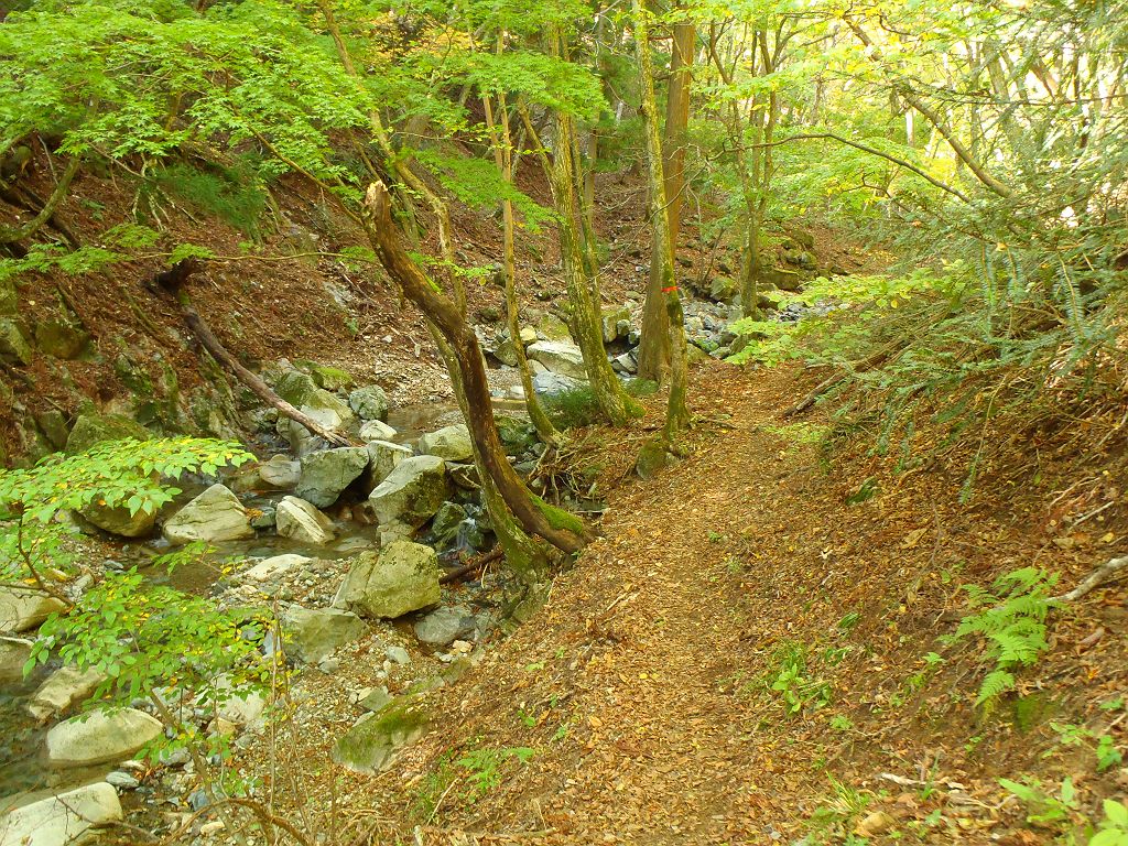 この付近から沢筋に入り、一旦なだらかの下りになります