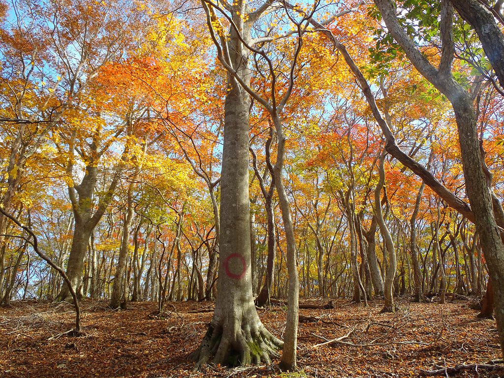 沢筋が終わり七人山のコルへ。紅葉が綺麗です