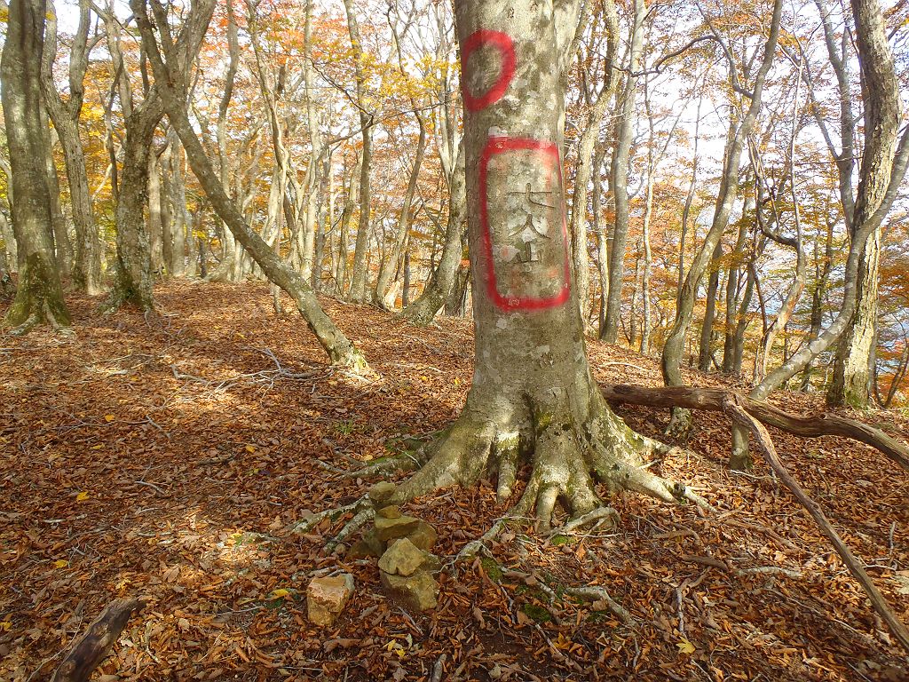 七人山の山頂。木に彫られた印だけでした