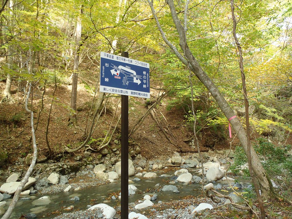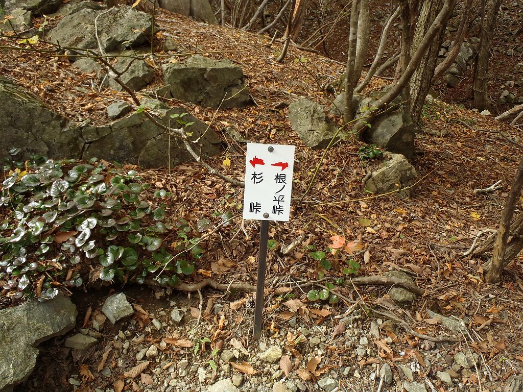 時折道標がある。とりあえず根ノ平峠の方向へ向かう