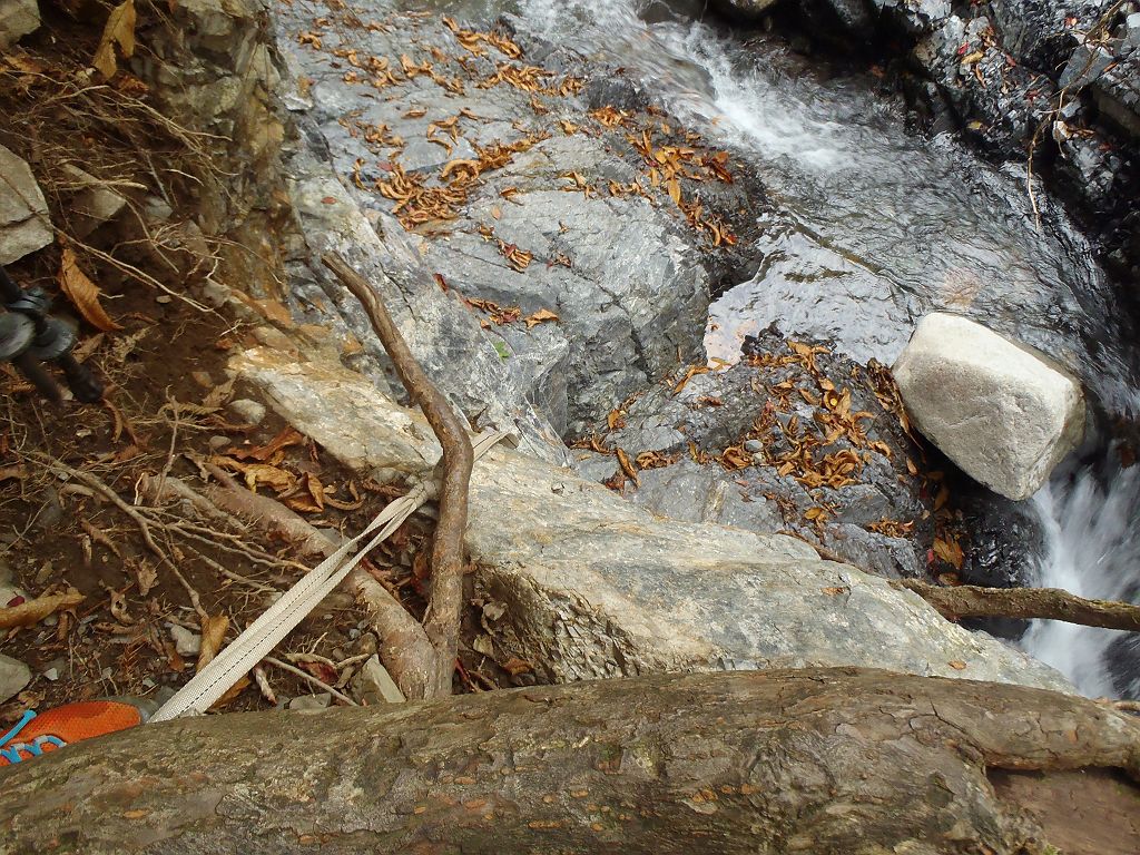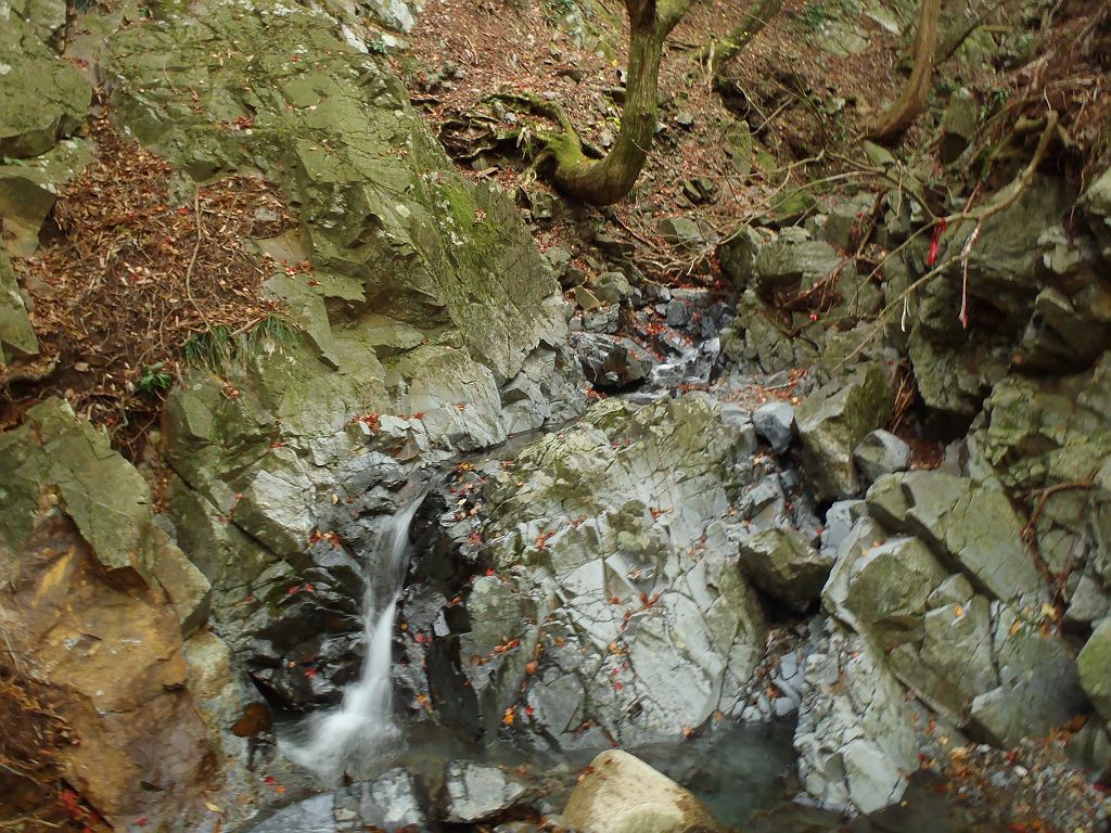 よこに流れる滝を巻いて登ったところが沢谷