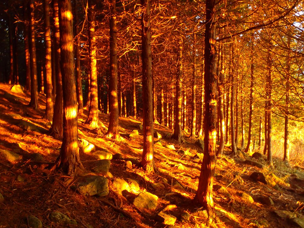 下山時、夕日が差し込む