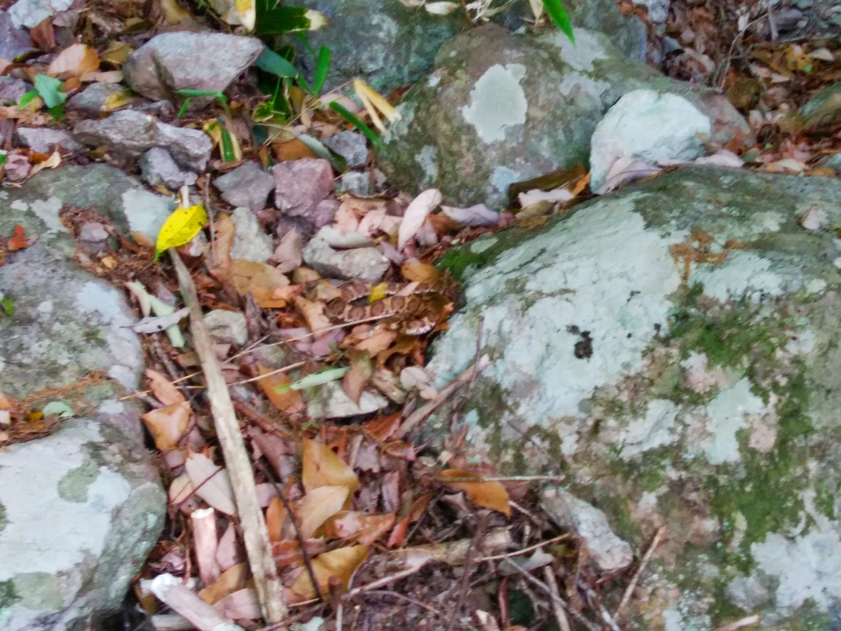 これはマムシでは!?谷筋の入口にヘビがいてびっくり。避けて通った