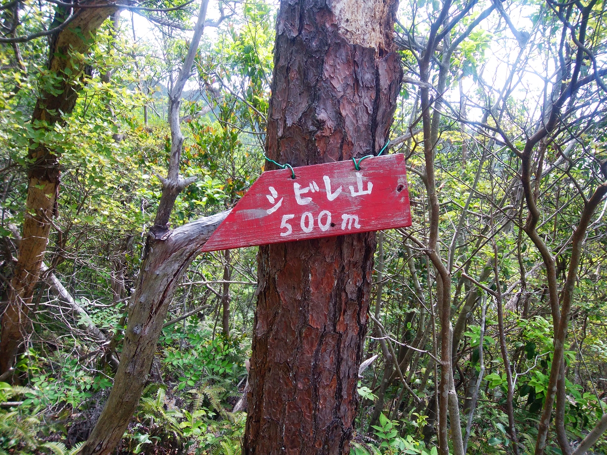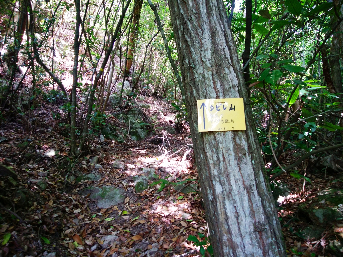 尾根に出るとシビレ山へのプレートがあった。まあ別に方角はわかってるからいいんだけどね