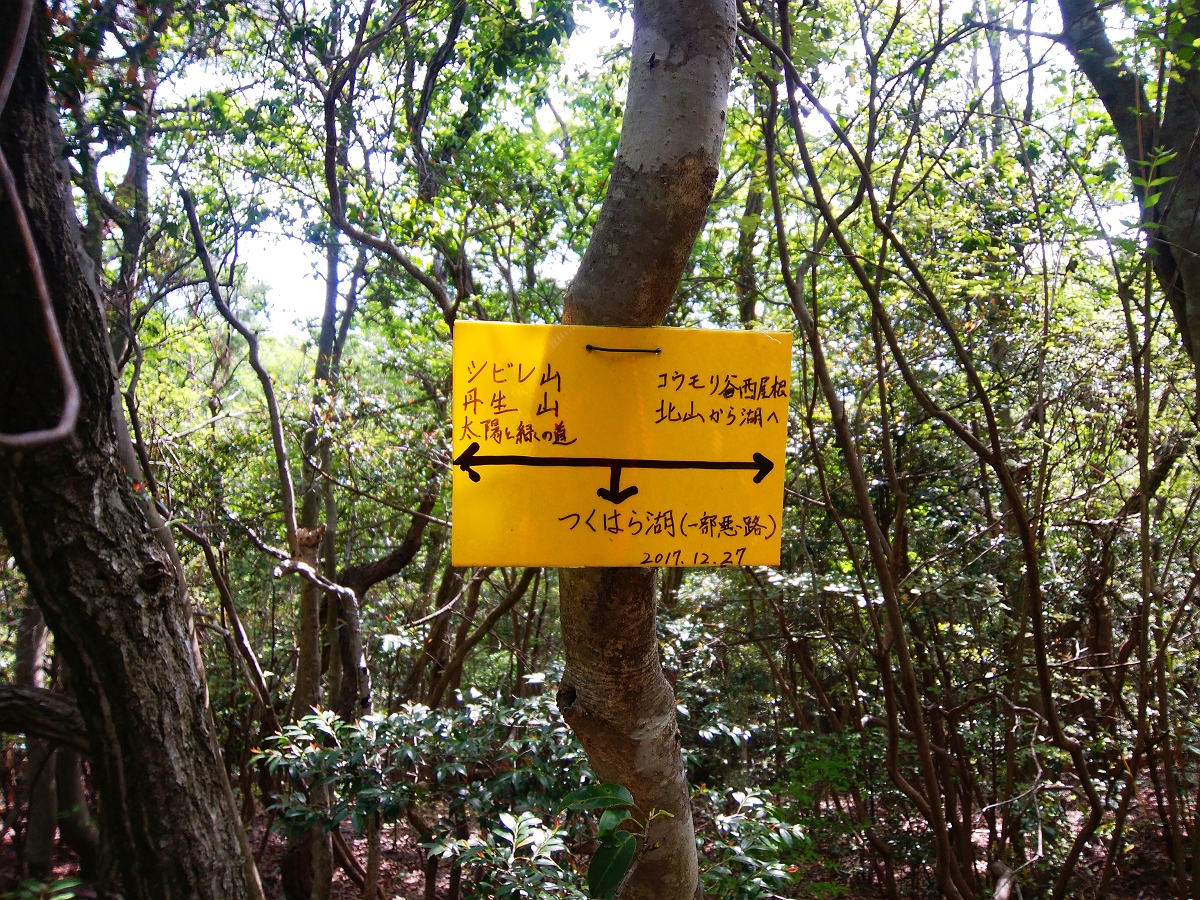 わかりにくいがここで分岐。つくはら湖方面はこれを右に行かないといけない