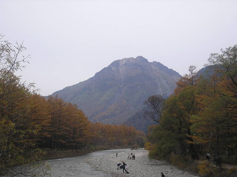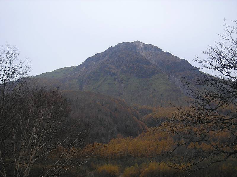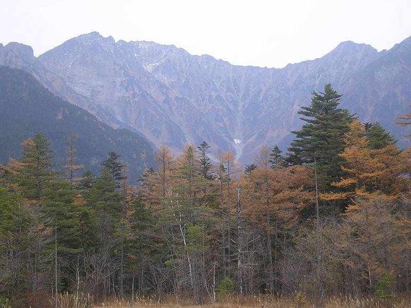秋の焼岳を望む