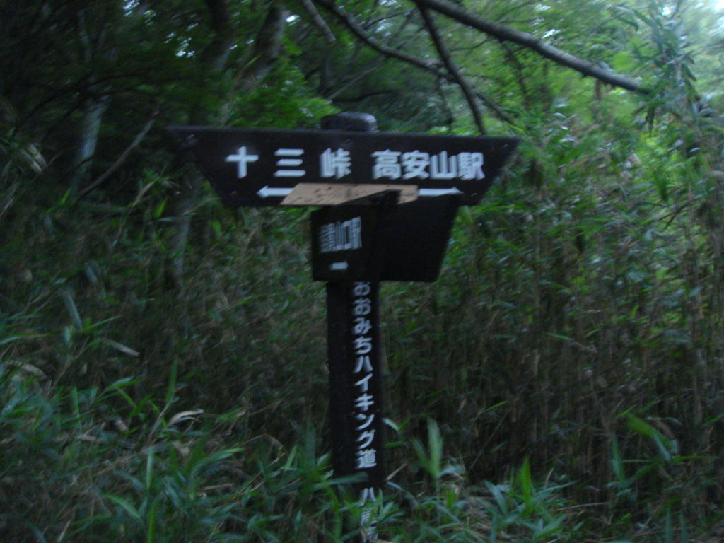 生駒縦走路との出合。夜景の展望地は右の高安駅方面。高安山頂ピークハントは左の十三峠方面へ
