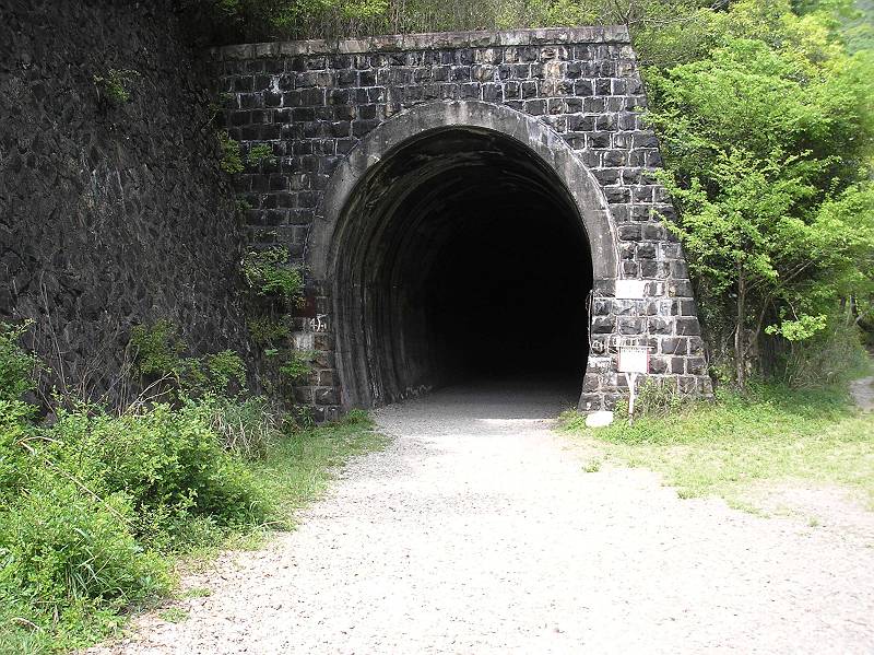 トンネル入口。トンネル内は冷っとしていて真っ暗