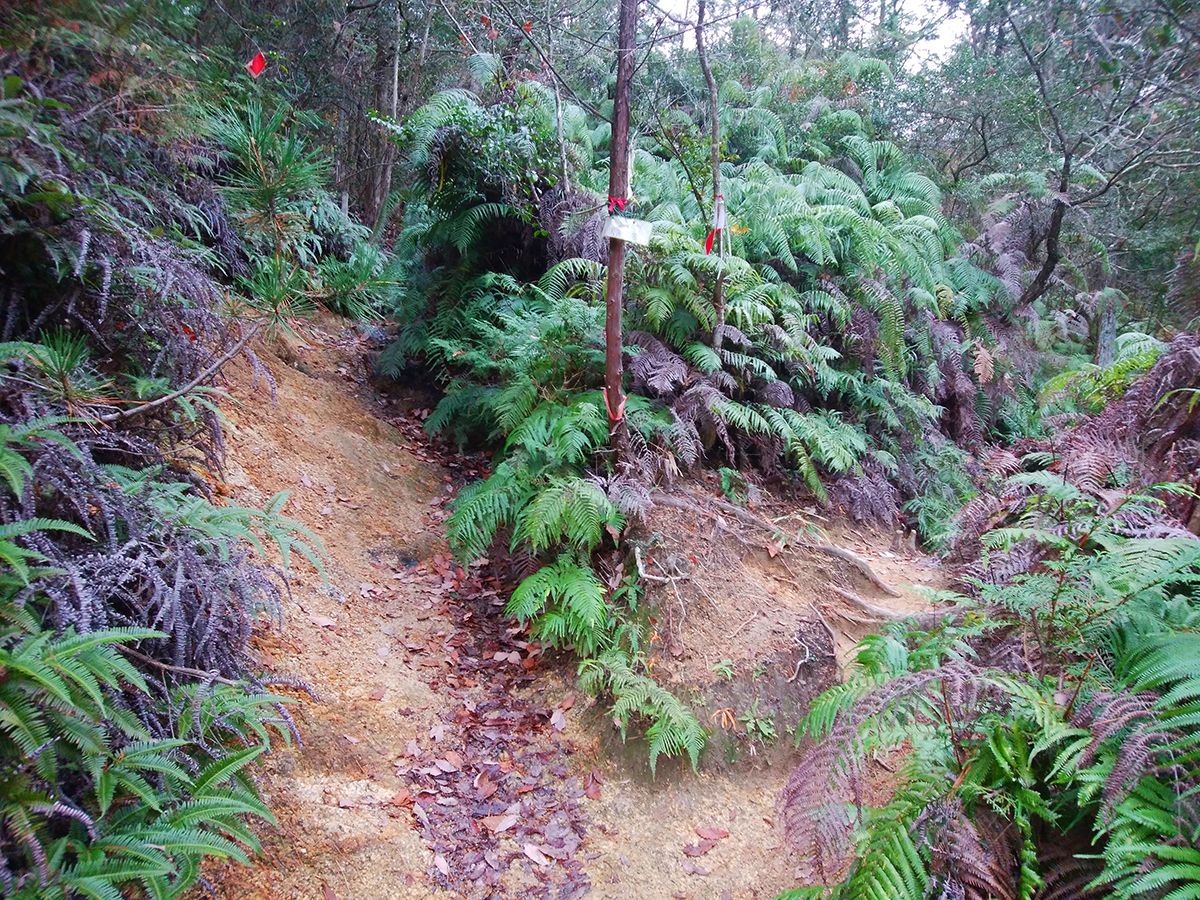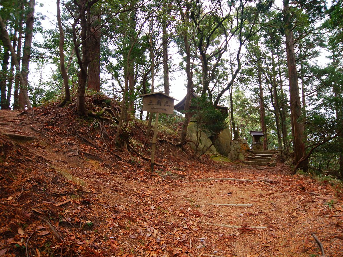 さらに先へ行くと三角点とかかれた看板があるので従って左へ登る