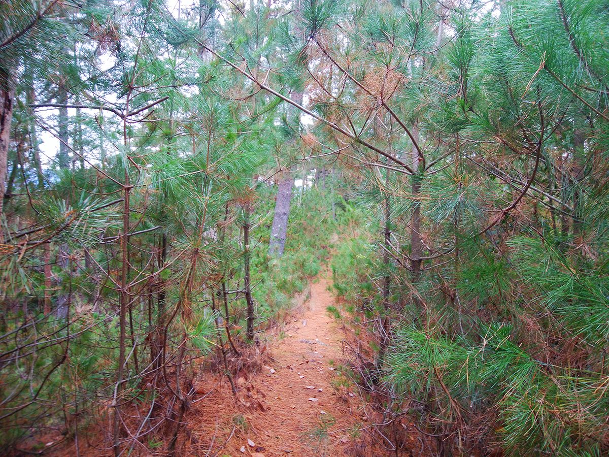 マツに囲まれた道。夏で半袖だとチクチクするだろうなあ