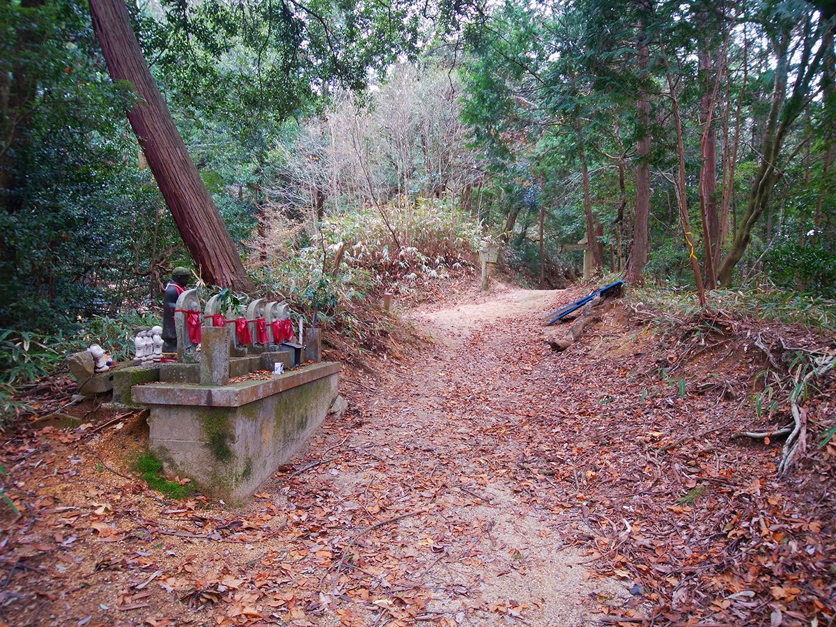 この地蔵の先で分岐だけど斜め右まっすぐ登っていく