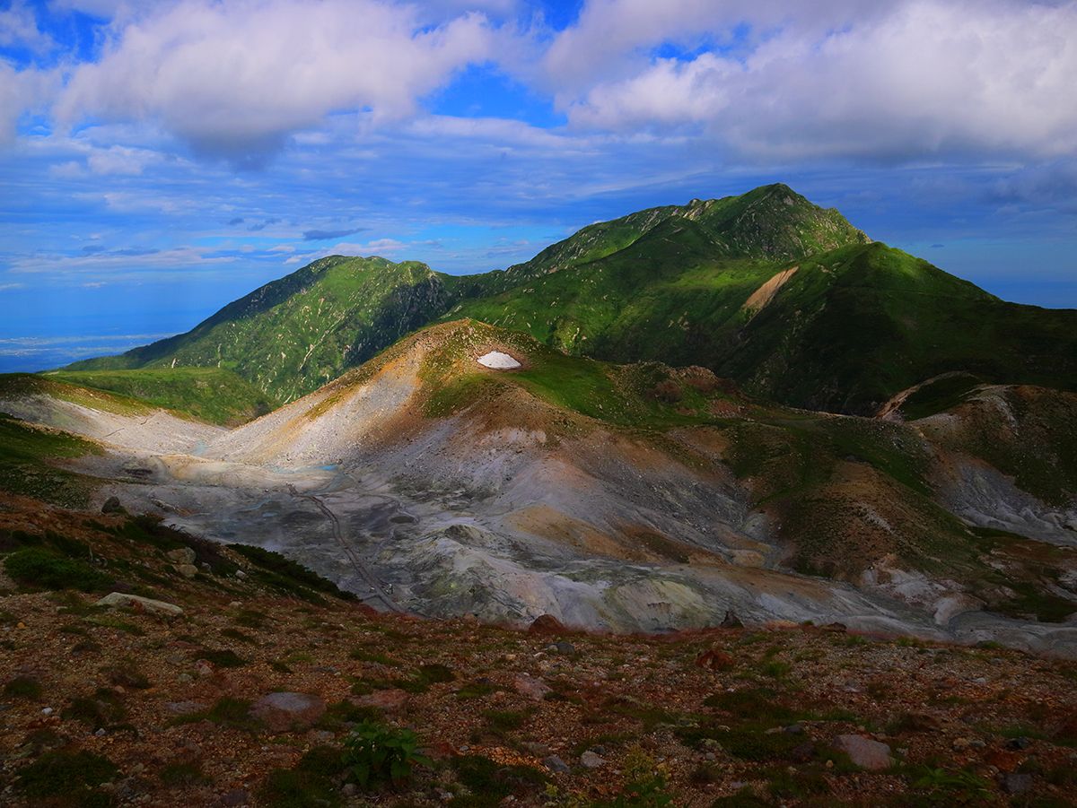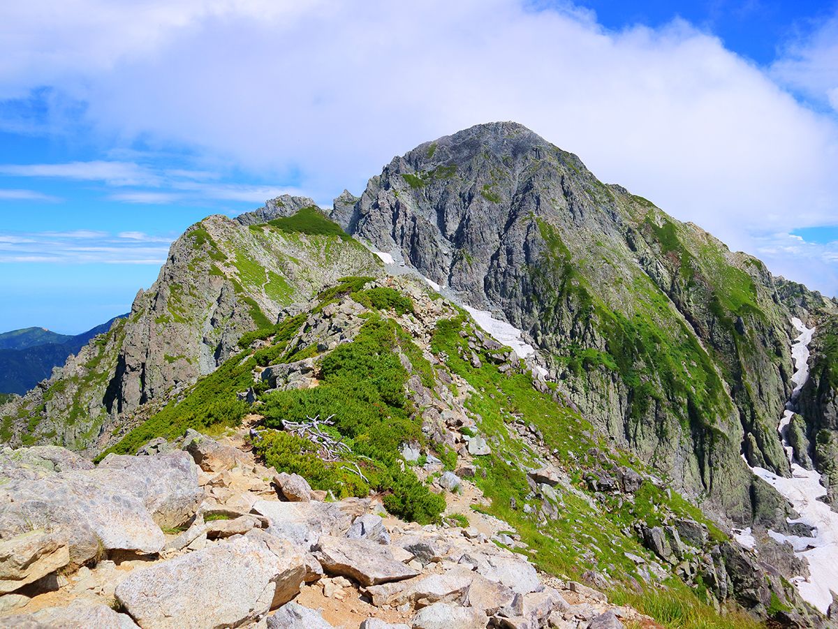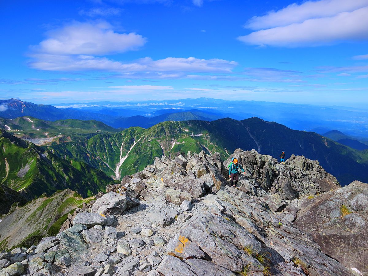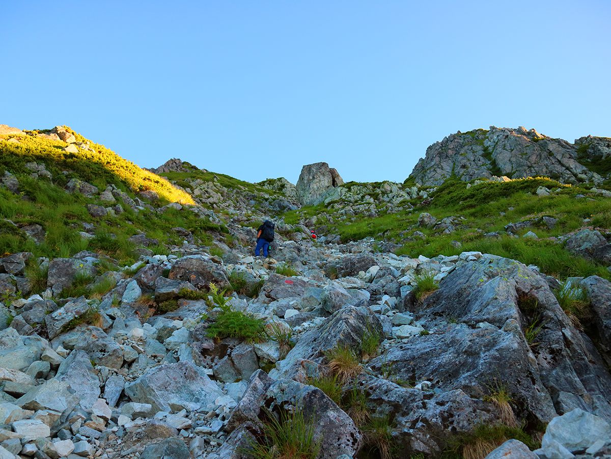 ガレ場の急登が続くけど、意外とテンポよく登っていけた。それにしても青空で良かった!