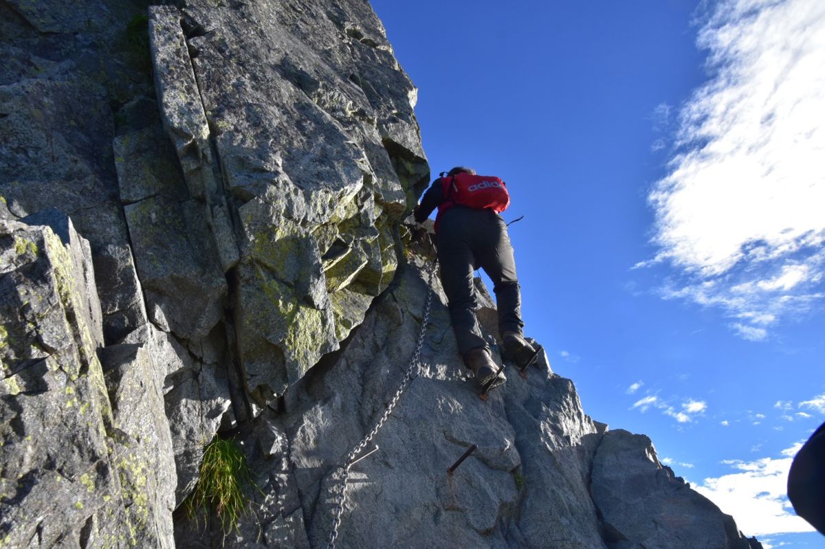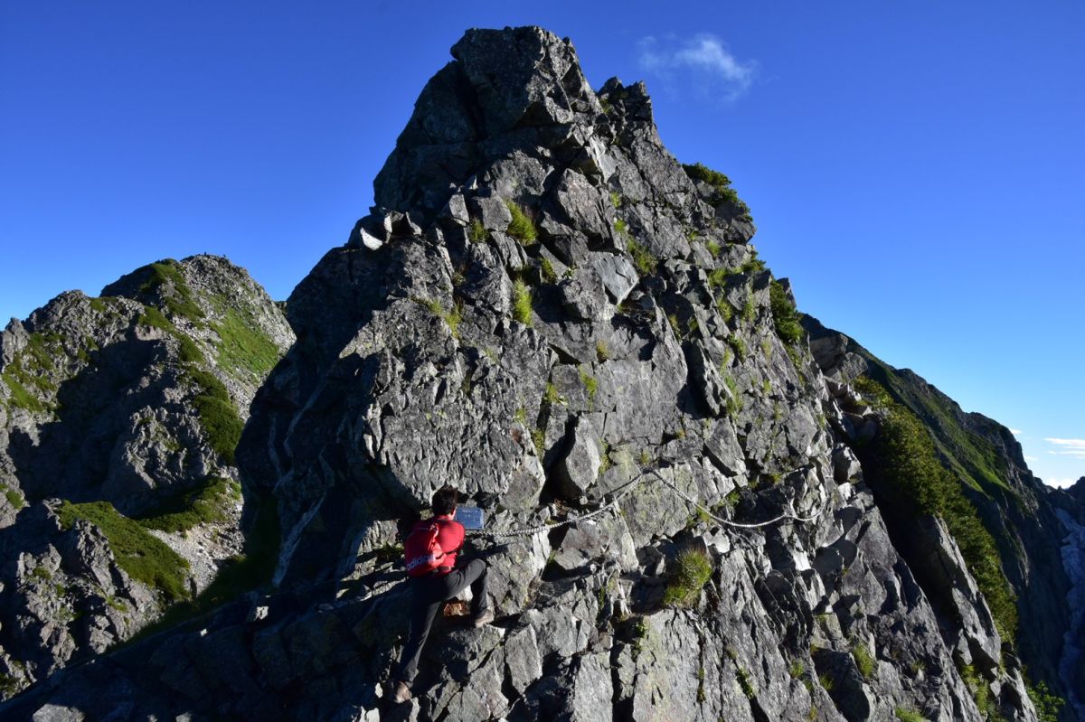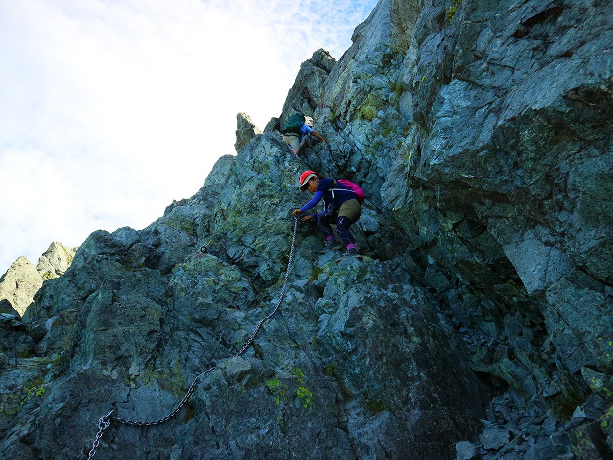 鎖場を慎重に下ってくるこまっちゃん。足場もホールドできるところもたくさんあるので余裕だったけどね