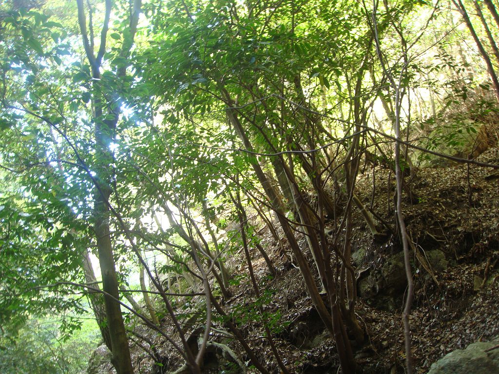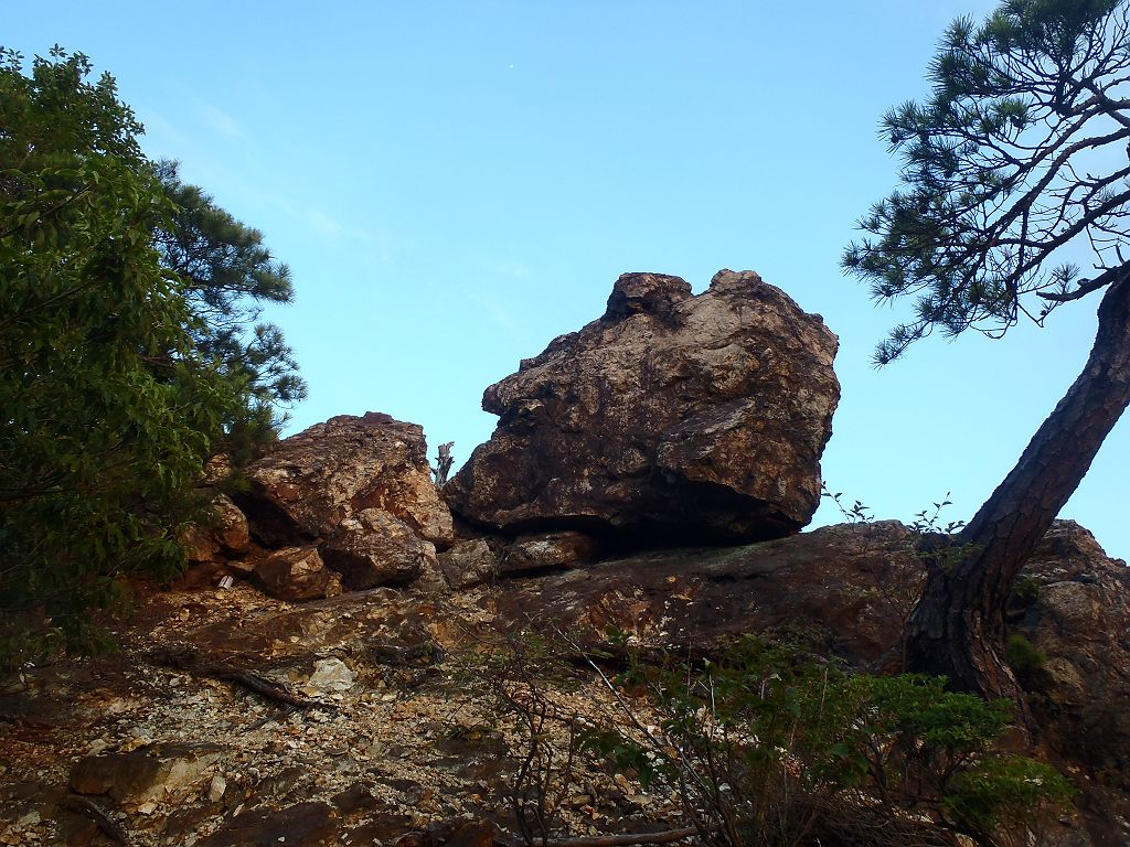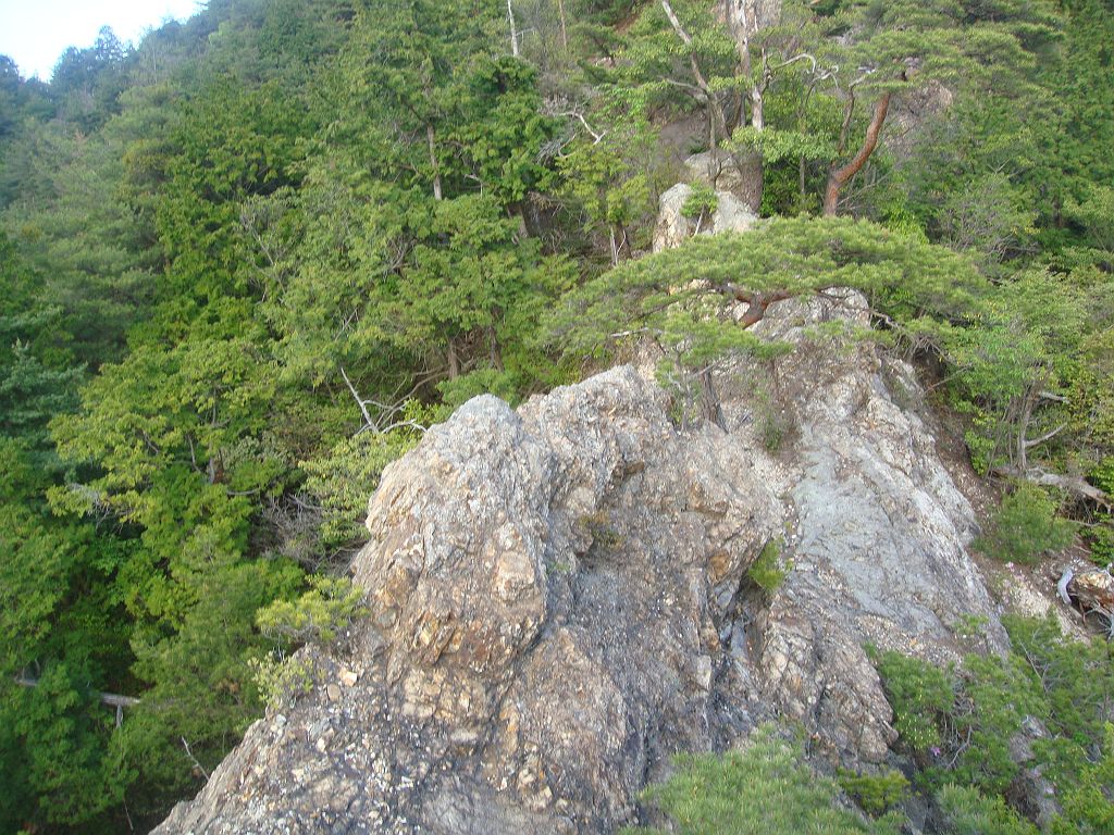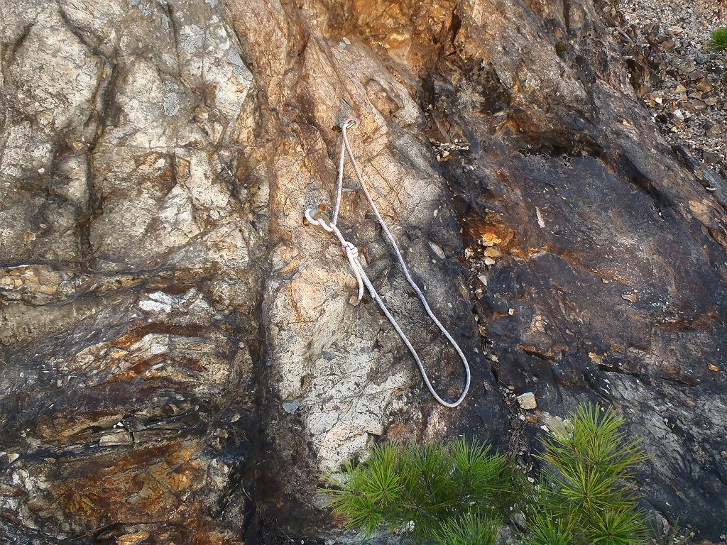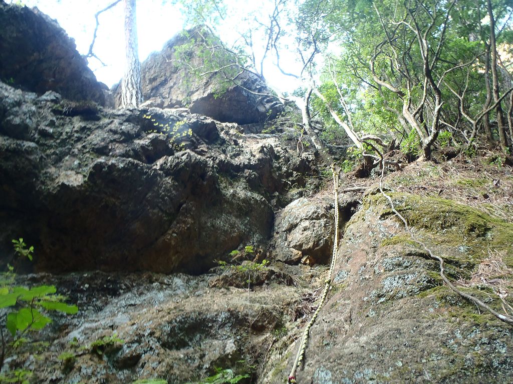 この付近からが岩へ登りやすい。これは以前の画像で現在はこのロープがなくなっていた