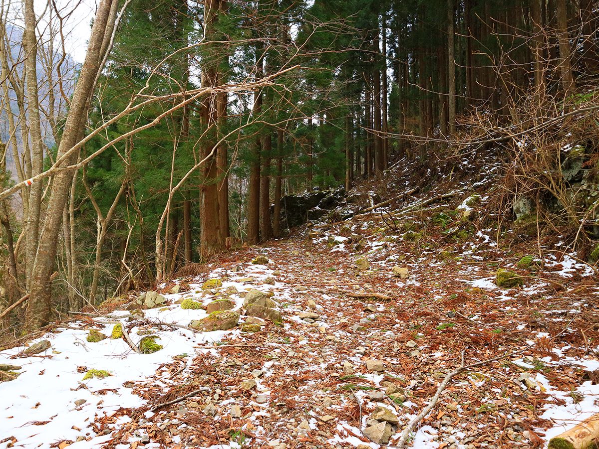 ところどころ雪が積もっているところがある。それにしても相変わらず長い林道だ