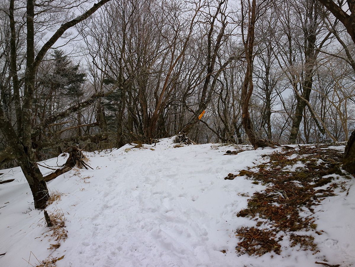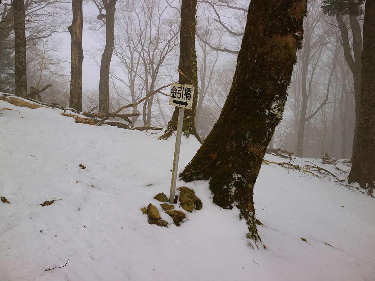 金引尾根分岐に到着。歩きにくい靴とアイゼンのせいで時間がかかってしまった
