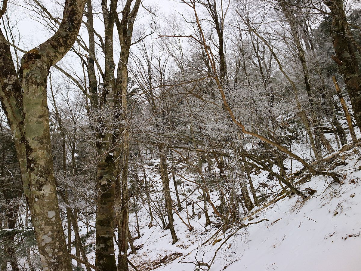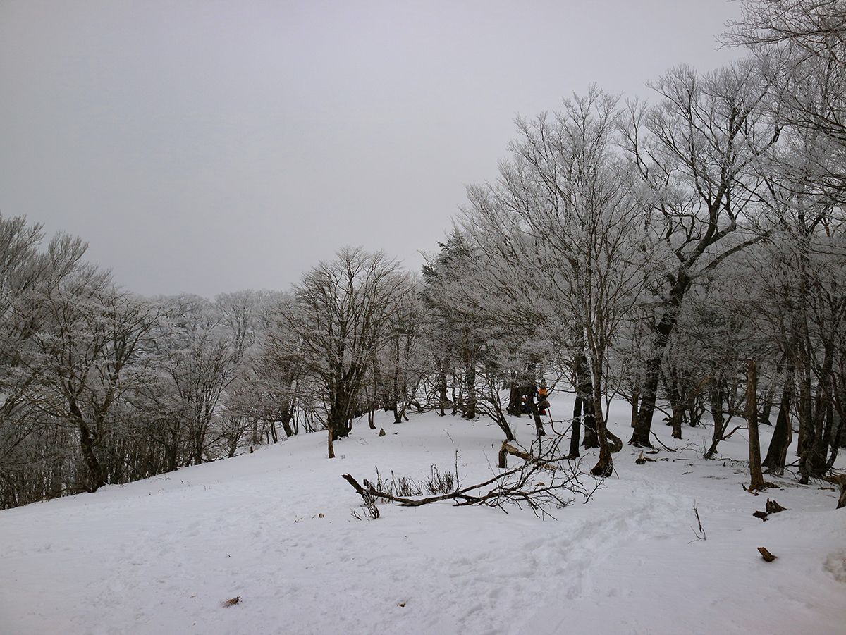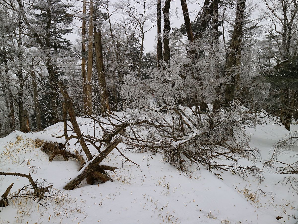 この付近だけは霧氷があったんだけどやっぱ青空がほしいね