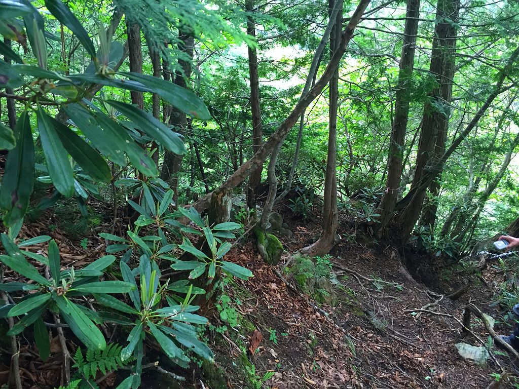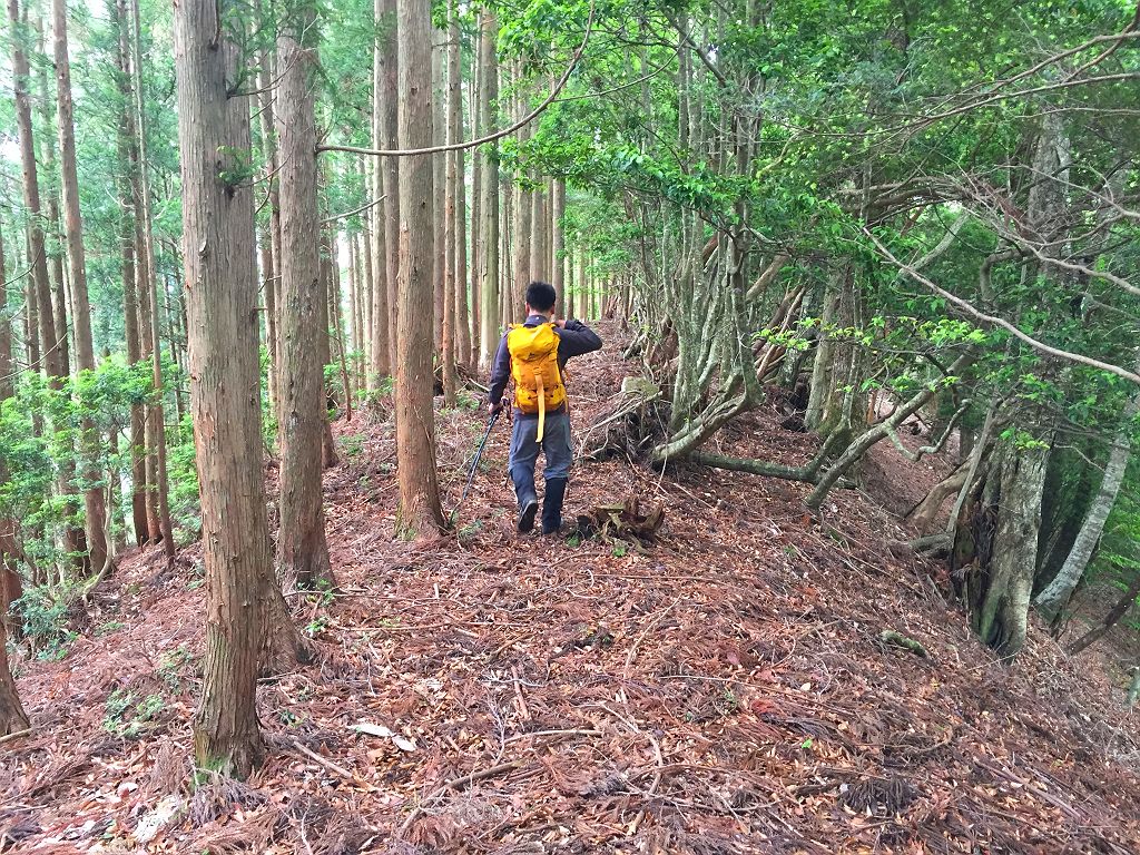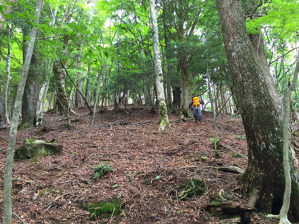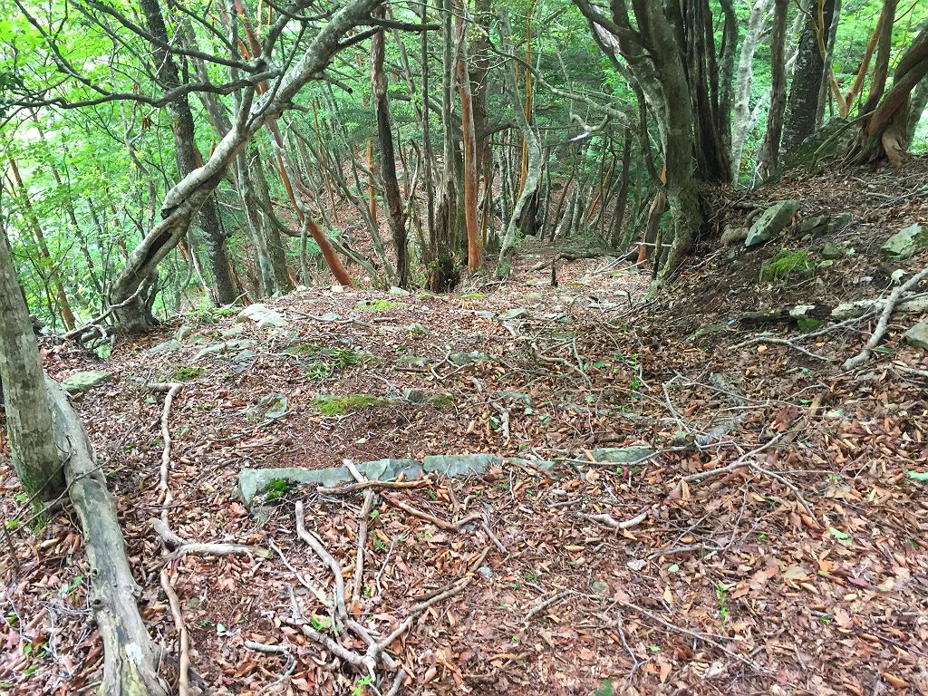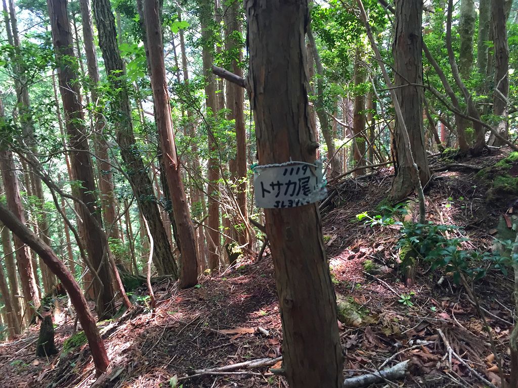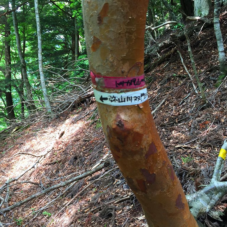 またあの長い林道を歩くのかと思いきや、大峰をよく歩く貝塚から来てたおじさんと話し込んでいてあっという間に林道は終わりました。白川八丁~トサカ尾根へは先日苦労したのでほぼ記憶に残っていて、今回は赤テープを張り付けておきました。とはいえ、この登り、かなりの急登息切れ。私は糖質制限中でどうにも以前と同様に体力というかエネルギーがでなくてバテバテの登りでした。朝、糖質とったのに足らなかったみたいです><