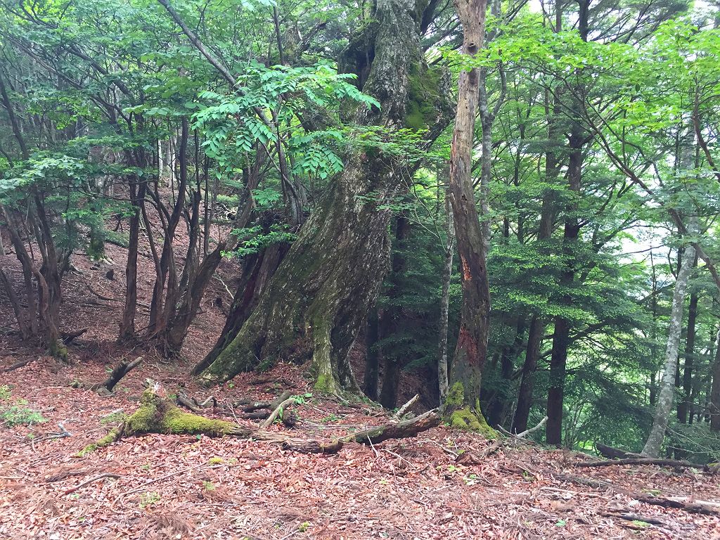 この尾根にはところどころ大きい木がある