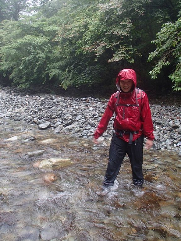 ここから、ゲリラ豪雨にあい、登山好人さんの防水カメラでの撮影。もう全身濡れているので沢も入りながら渡る