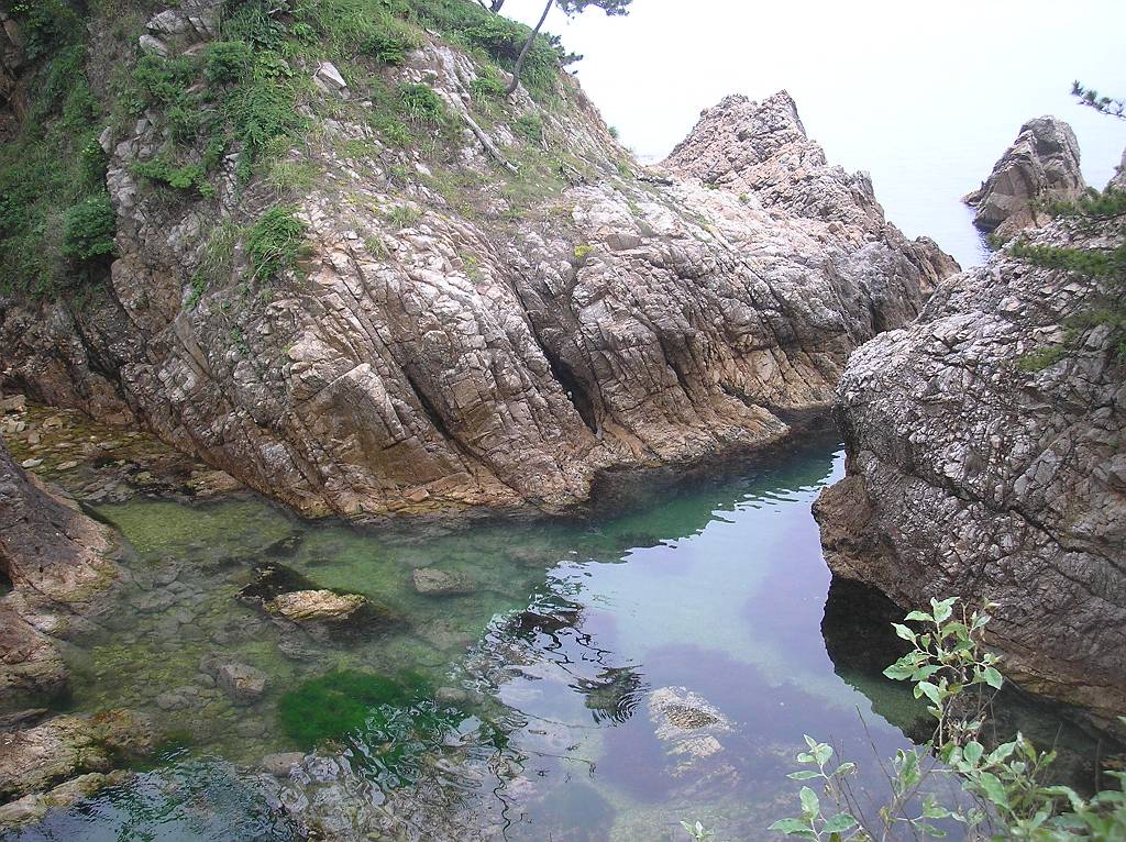 夏はここの海で泳ぎますが、海水浴シーズンではないときは綺麗な海を見ながら山陰海岸自然歩道コースをハイキングします。本来はもっと距離があるのですが、私の好きコースは鴨ヶ磯→城原海岸です。網代漁港より田後(浦富海岸)へ行く道を上がっていくと鴨ヶ磯海岸の看板があります。海岸へ下って行き、城原海岸のほうへ歩いていきます。帰りは城原海岸から道路へ登り、海岸を下に見ながら鴨ヶ磯のほうへ戻るのがベストだと思います。ここの海は本当に綺麗で、3mくらい海底でも透けて見えています。こんな綺麗な海はあまりないと思います。