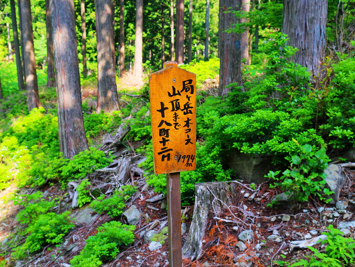 局ヶ岳本コースで山頂まで十八町で1974mの距離らしい。細かい距離をよく計ったなって思った
