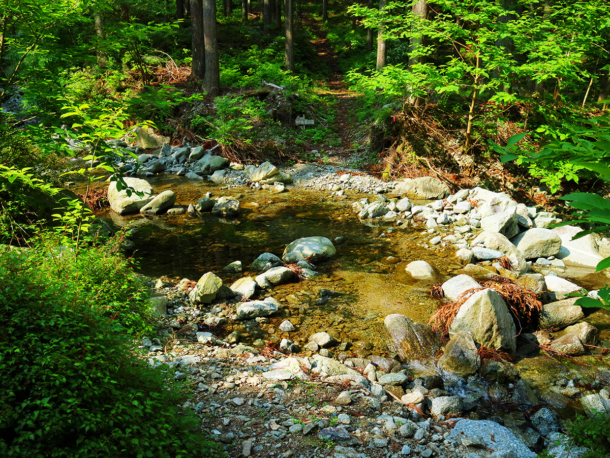 この沢を渡るけど、ドボンッしないように注意して渡らないといけない