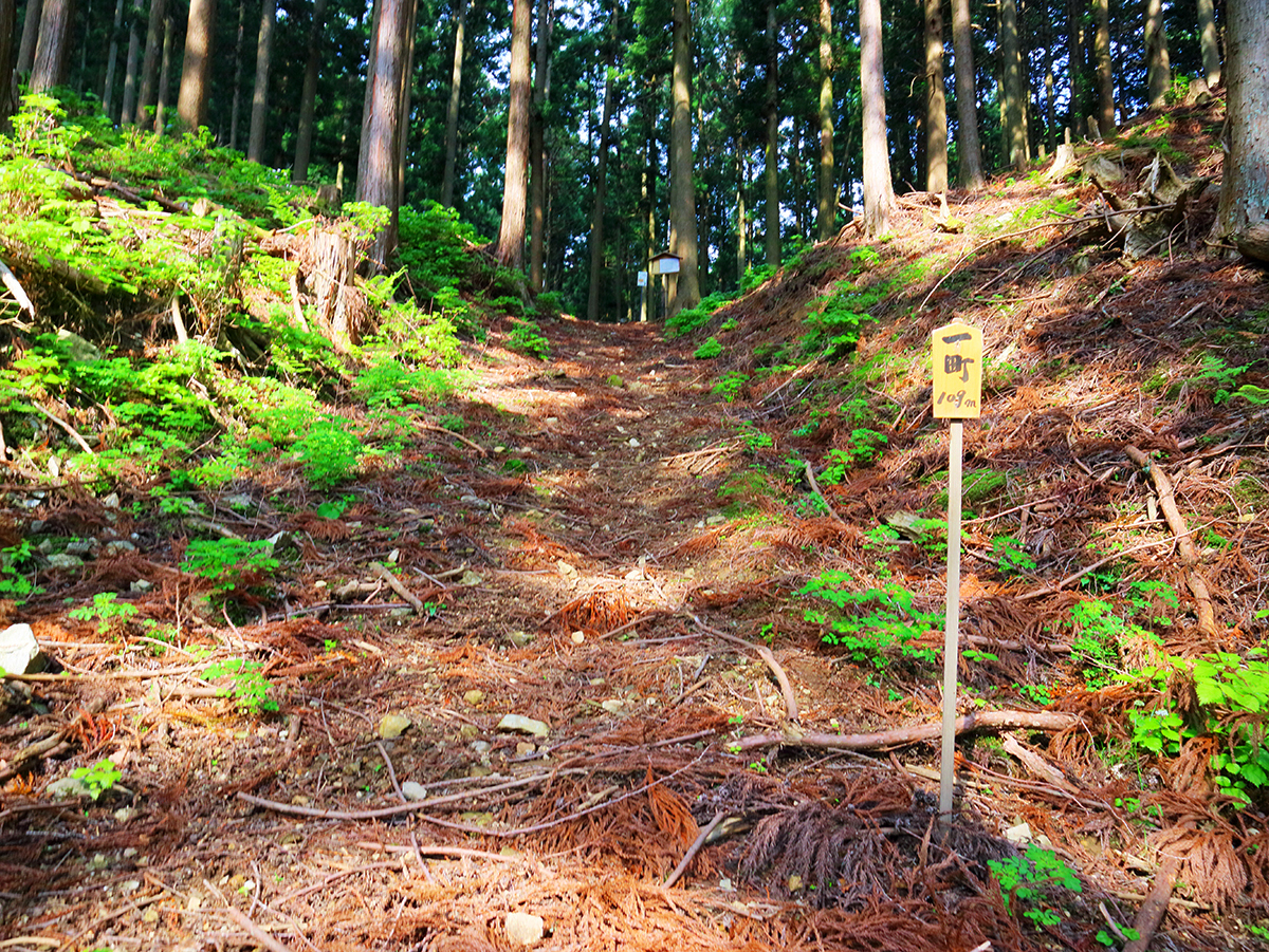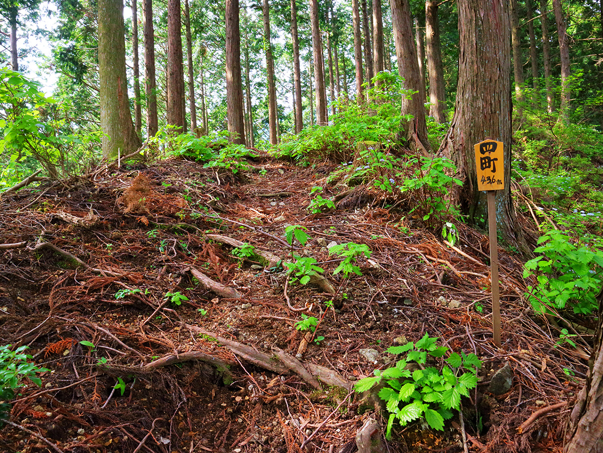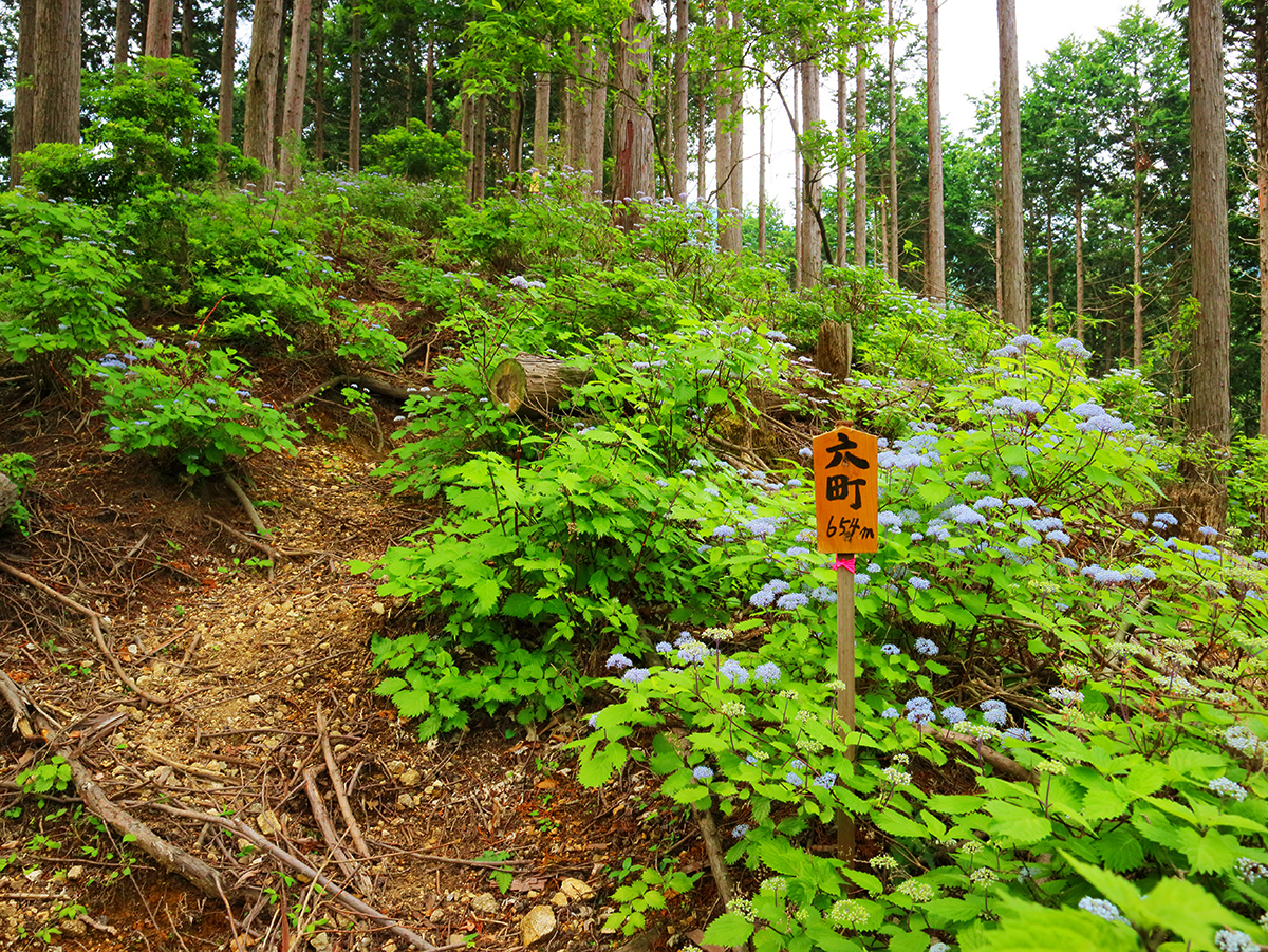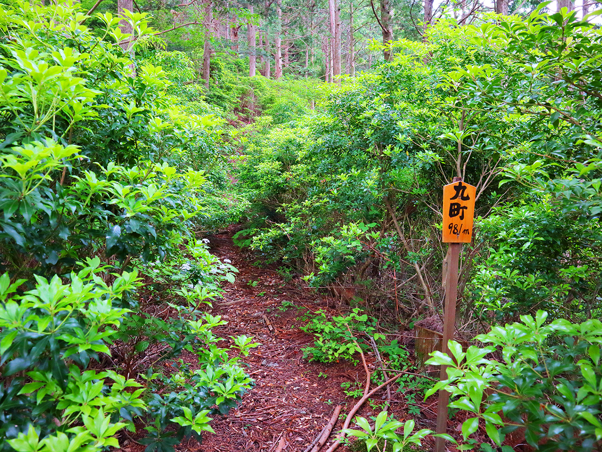 七町(距離:763m目)。また舗装道に出るけど、この先で終わってまた登山道になる