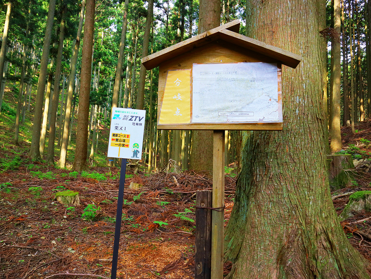 ここで分岐。今回健脚コースは調べてなかったのとキツそうなので左の本コースで行くことにする