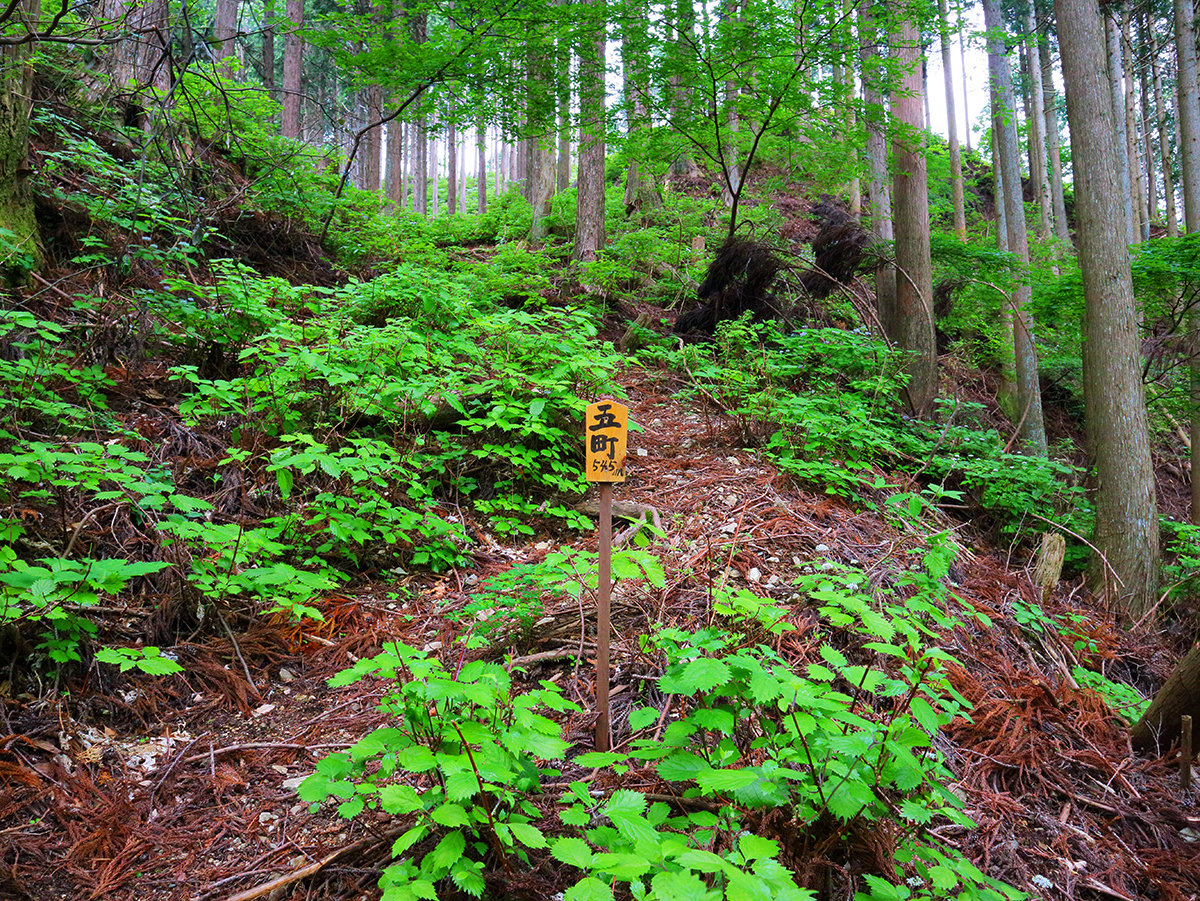 十七町(距離:1853m目)。ここで少し雰囲気が変わってきた。この付近、山頂直下は少しだけ急登っぽかった