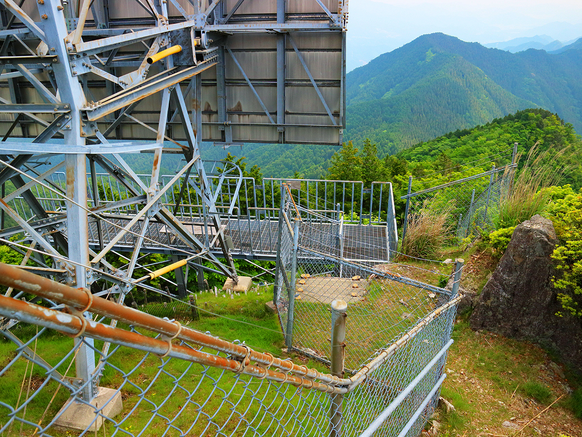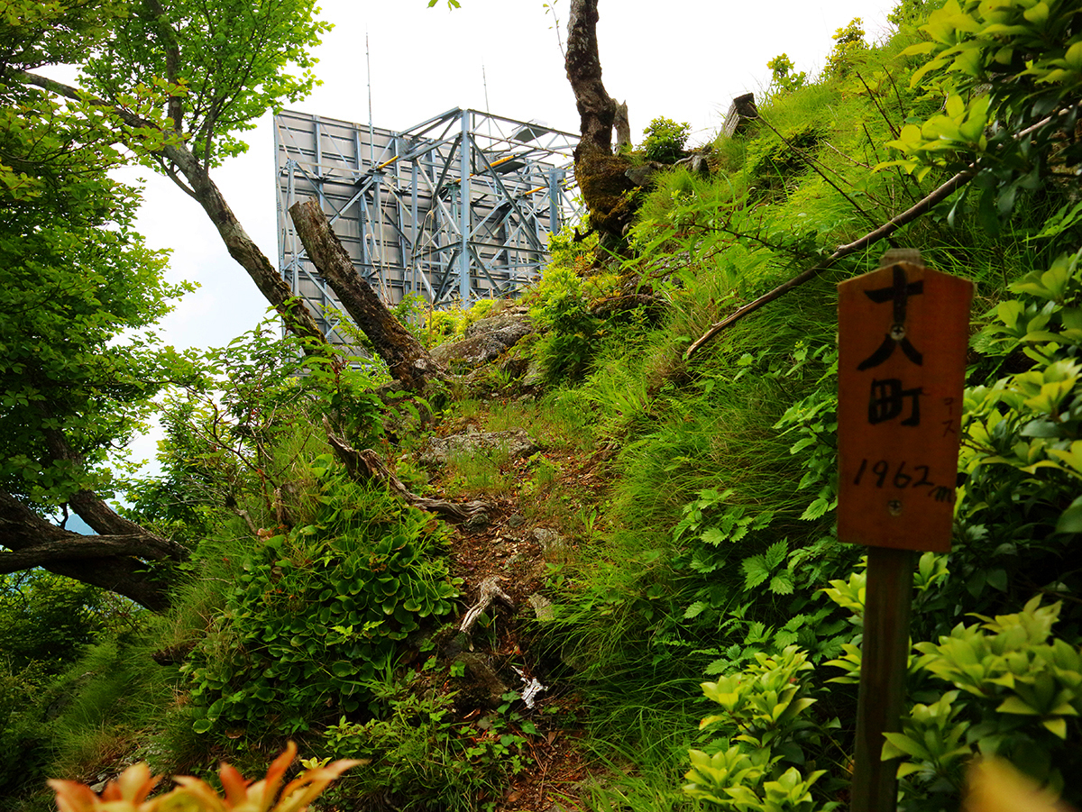 最後の十八丁目(距離:1962m目)。山頂はすぐそこ。調べていた通り、山頂には反射板があった