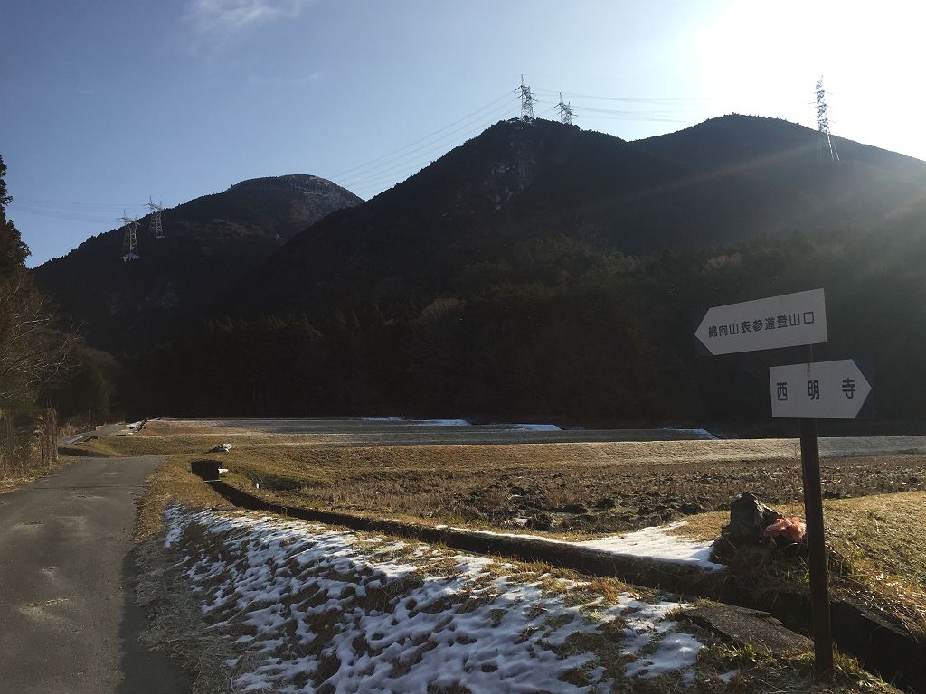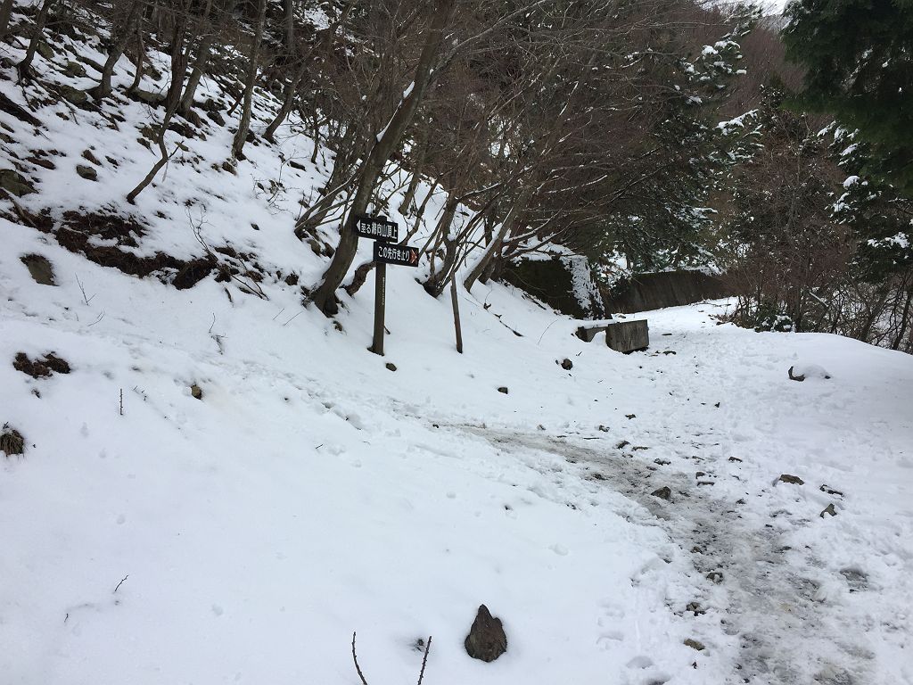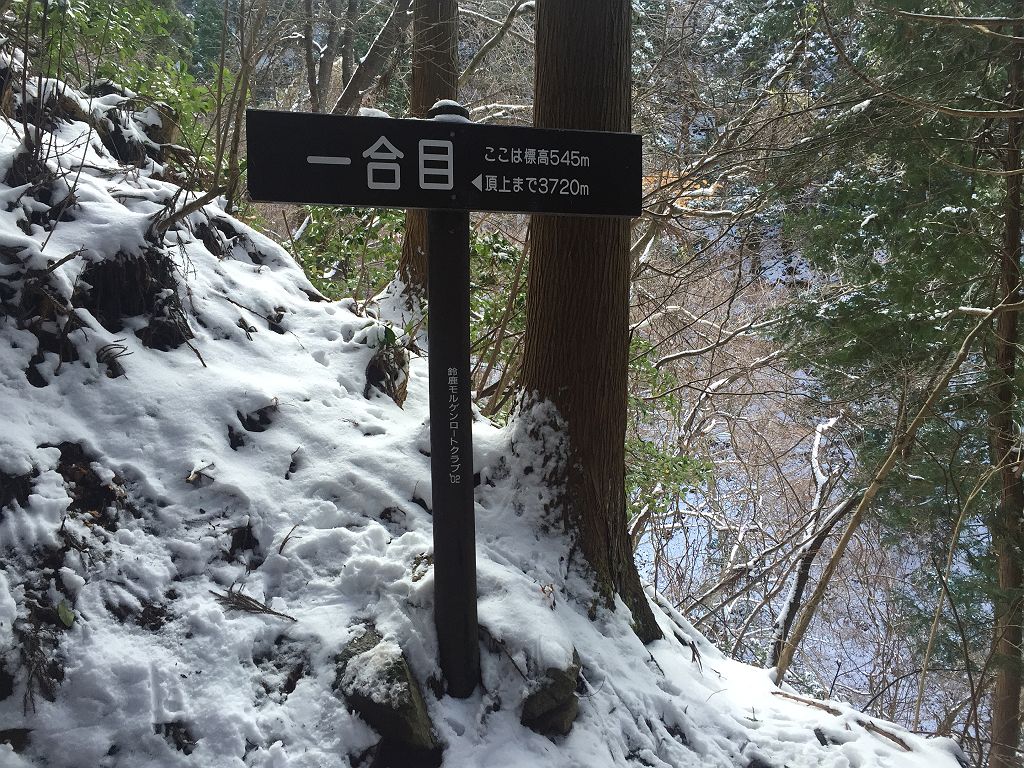 表参道登山口。ここから本来のスタートになる。標高460mで1110mの山頂まで4.3kmとは、そうとう巻き巻きのルートになるんだろうと頭に思い浮かべていた