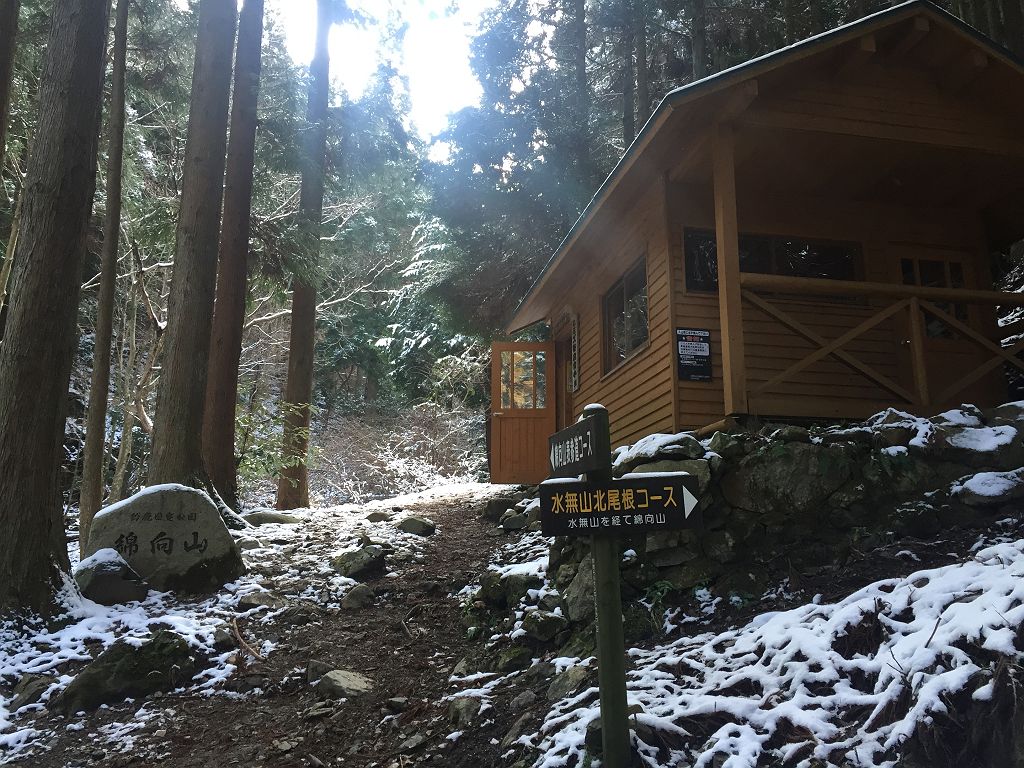 ヒミズ谷出合小屋。ここで入山届けを出す