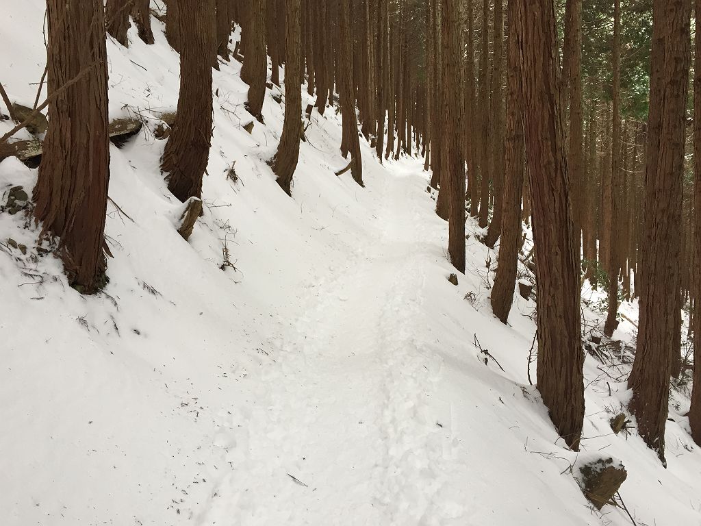 冬季ルートは尾根の直登になるが、画像で伝えきれないが山頂手前まで急登が続く